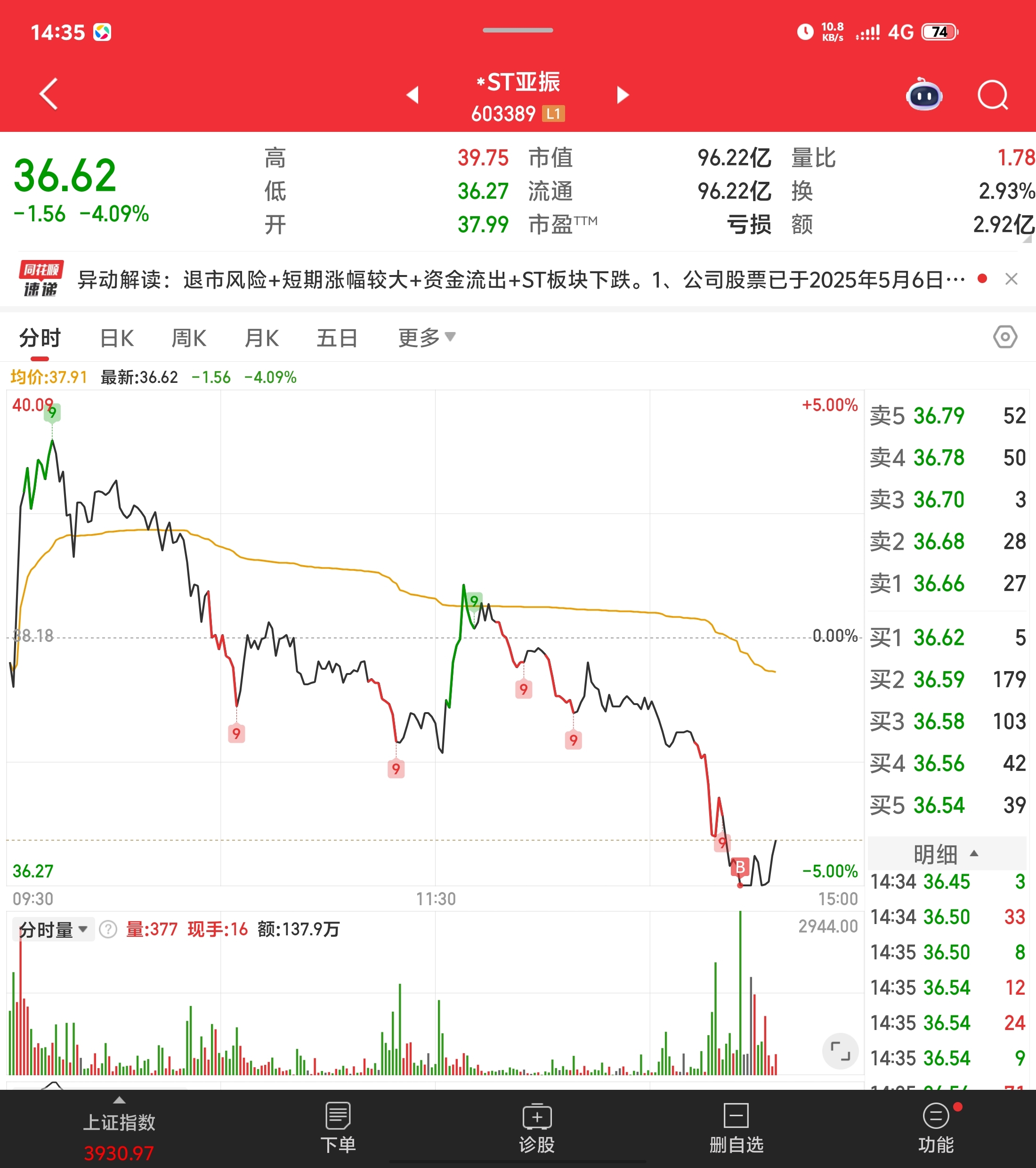 $*ST亚振(SH603389)$ 这个帐号节前38.3减的,今天直接跌停补