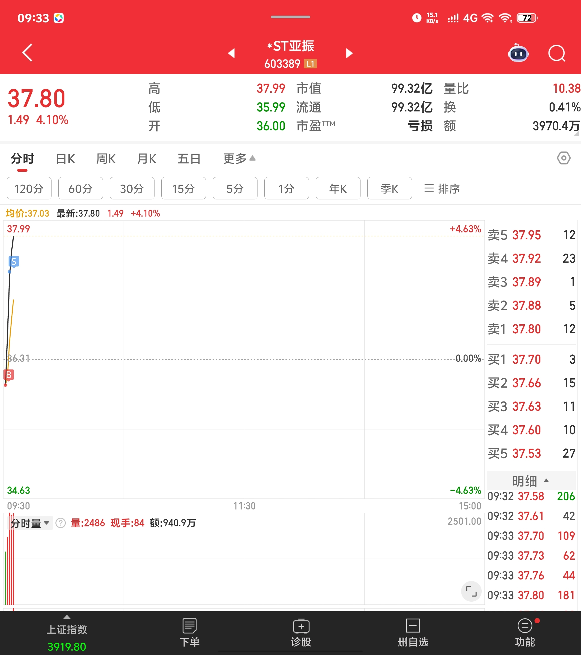$*ST亚振(SH603389)$ 又丅一个,37.38卖早了