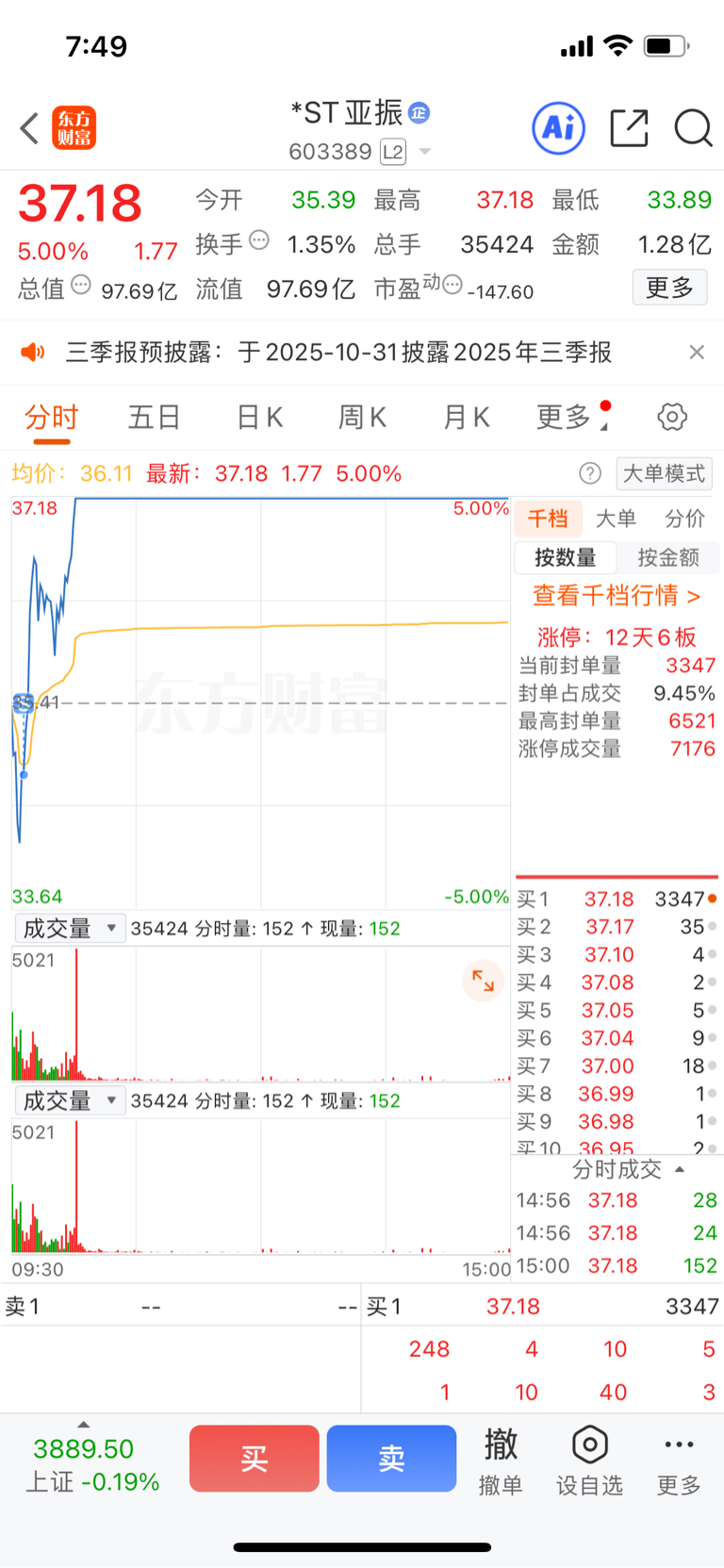 $*ST亚振(SH603389)$ 今天水下清仓了,零轴附近多次挂单买回,没买到,后来就放弃了,现在的价格再也不敢买了,脸都被打肿了亚振是真的牛