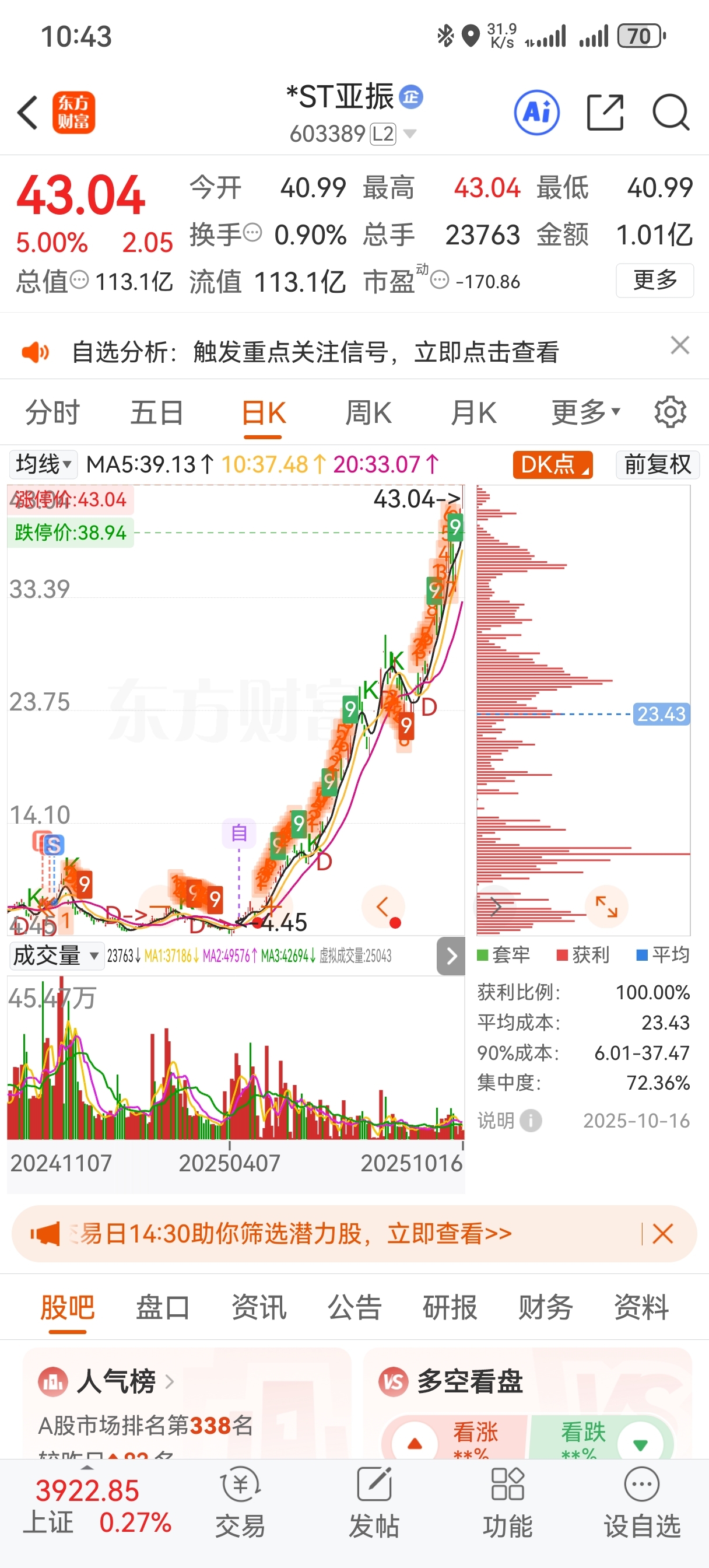 $*ST亚振(SH603389)$ 谁有我卖的飞