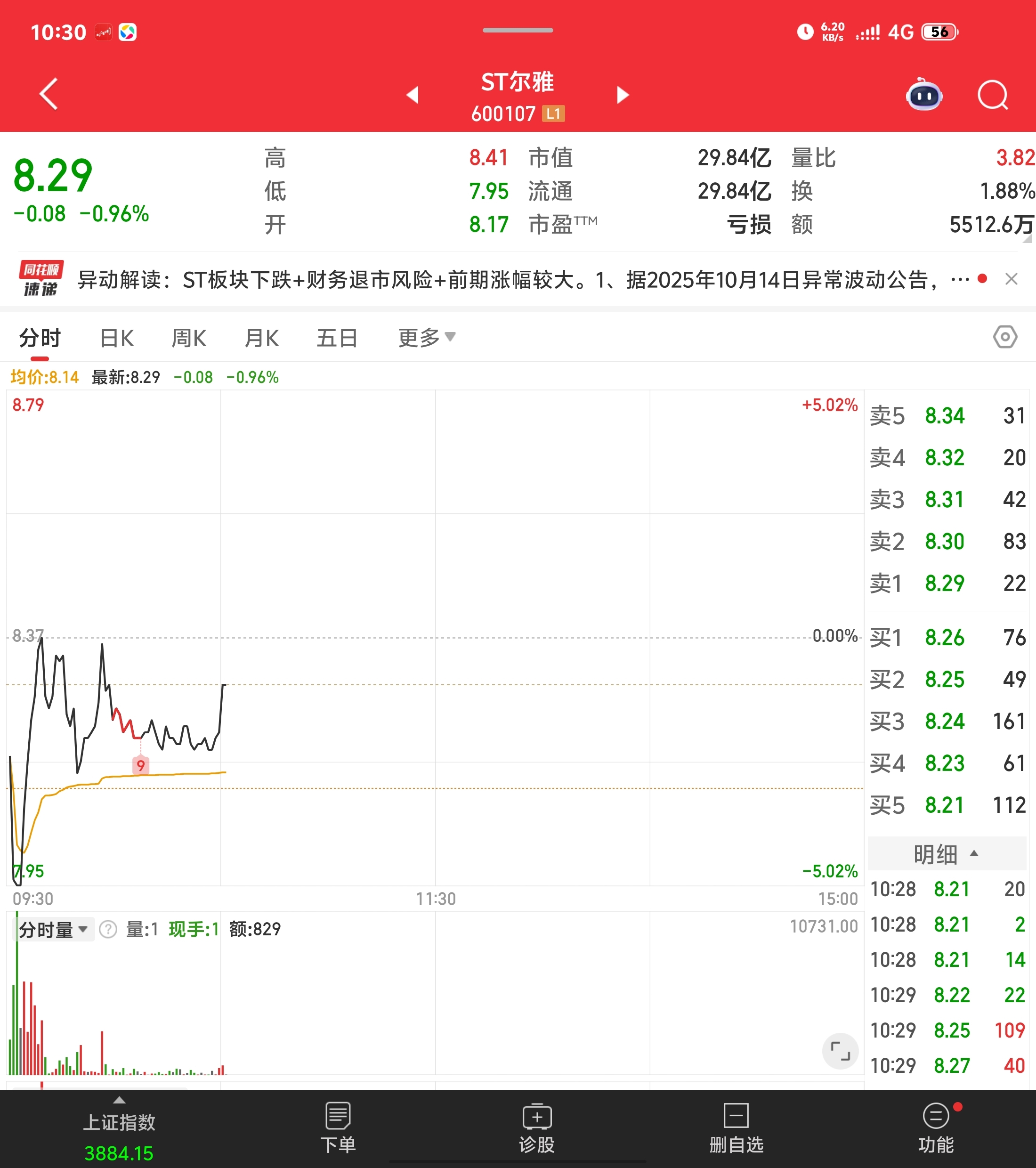 $*ST亚振(SH603389)$ 今天只能把希望寄托在第二重仓股尔雅,让我少亏一点