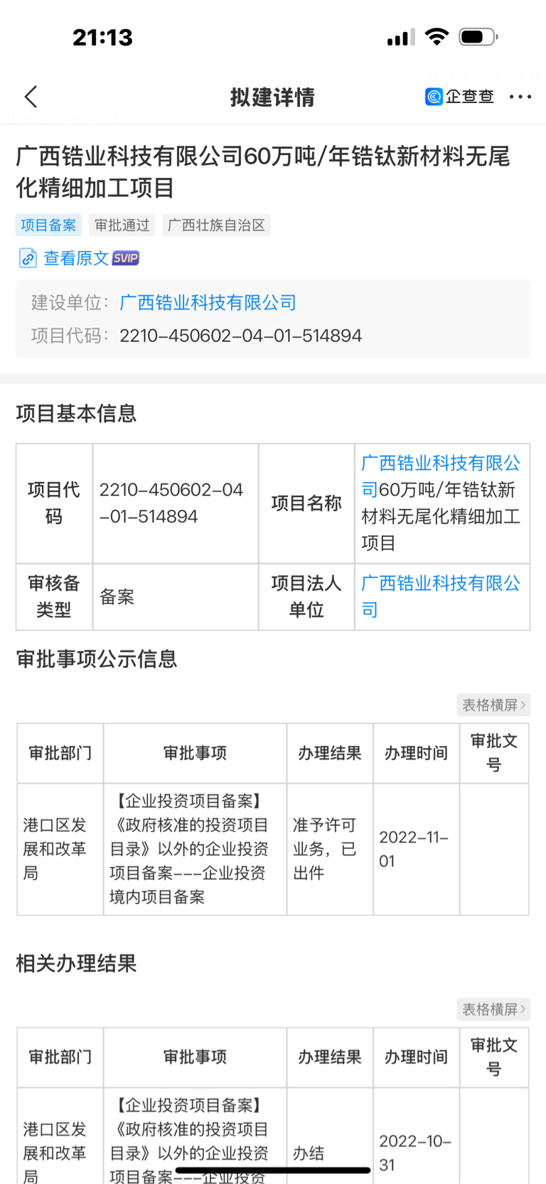$*ST亚振(SH603389)$ 广西锆业,60万吨!