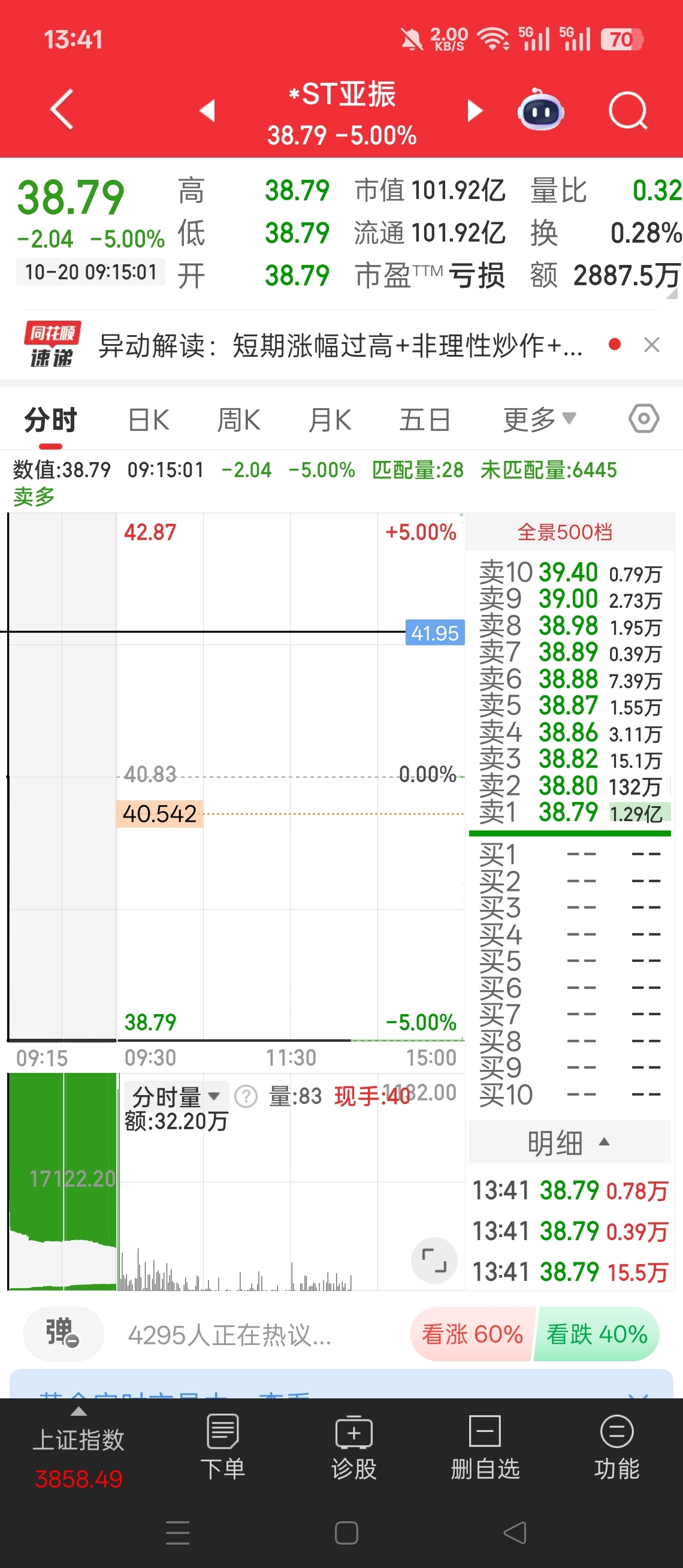$*ST亚振(SH603389)$ 竞价开出来6445手啊,我挂的隔夜为啥没成交啊