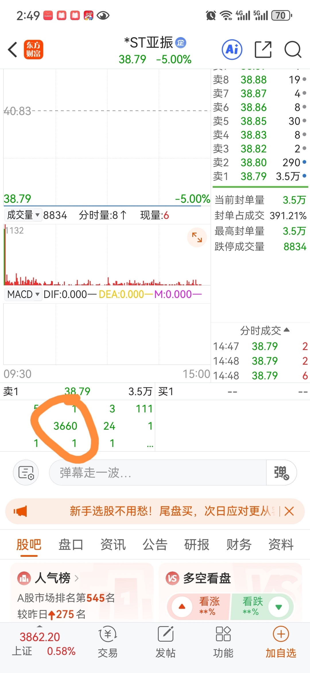 $*ST亚振(SH603389)$ 这个3660手,别让他跑了,这货赚的太多,吃相太难看
