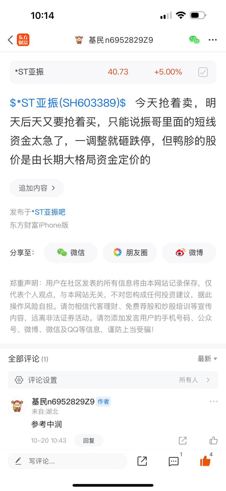 温馨提示: 1.根据《证券法》规定,禁止编造、传播虚假信息或者误导性信息,扰乱证券市场;2.用户在本社区发表的所有资料、言论等仅代表个人观点,与本网站立场无关,不对您构成任何投资建议。用户应基于自己的独立判断,自行决定证券投资并承担相应风险。《东方财富社区管理规定》
