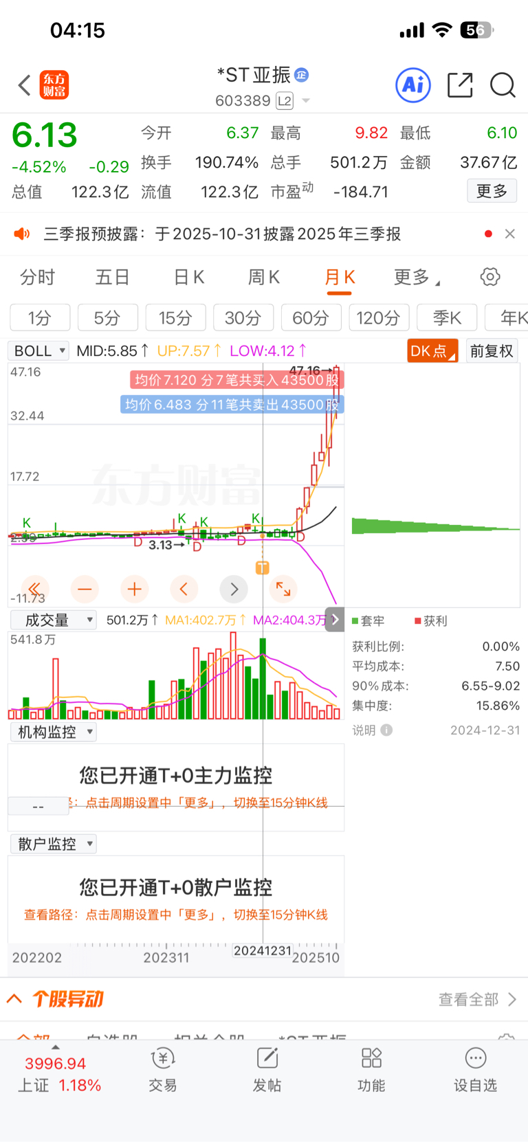 $*ST亚振(SH603389)$ 错过了成为百万富翁的机会