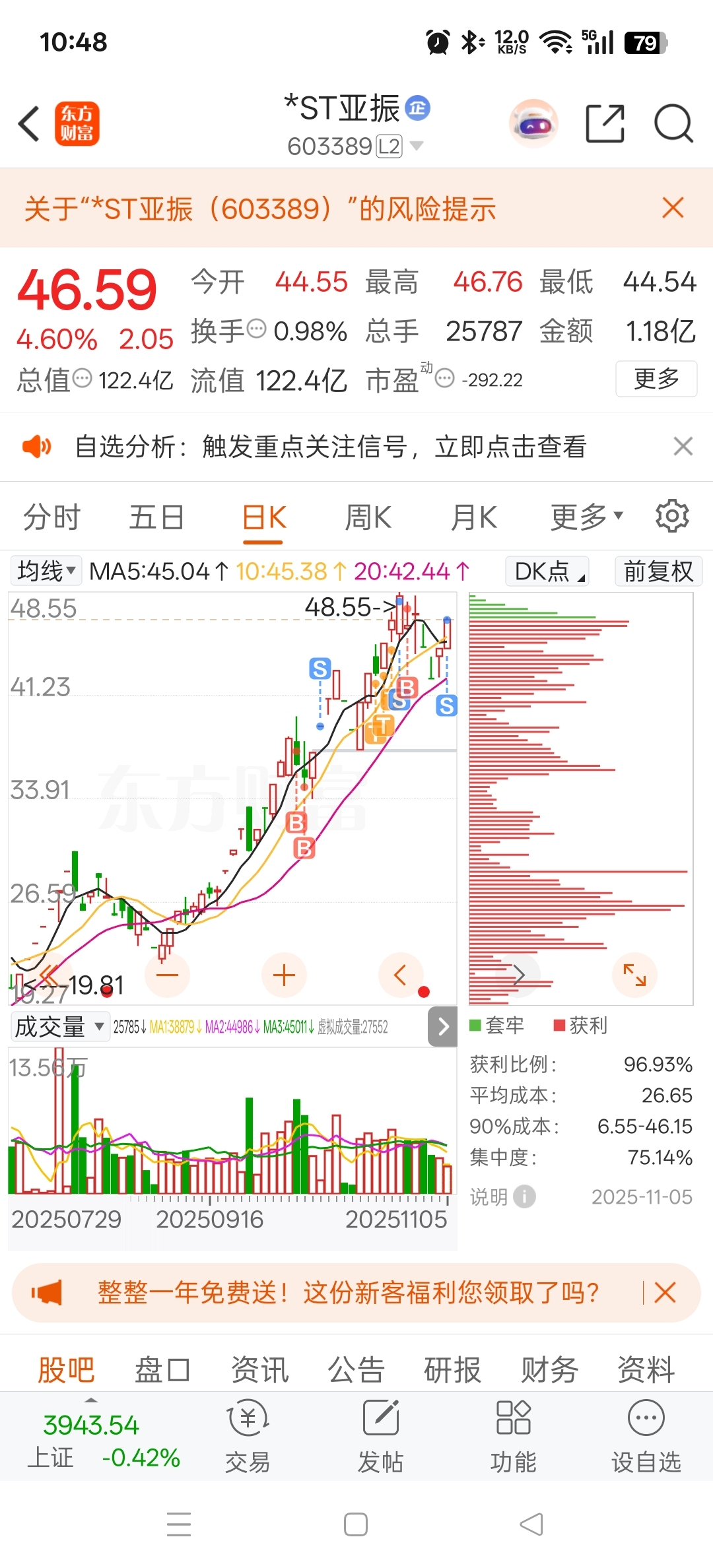 $*ST亚振(SH603389)$ 清了,赚了30%,很知足了。
