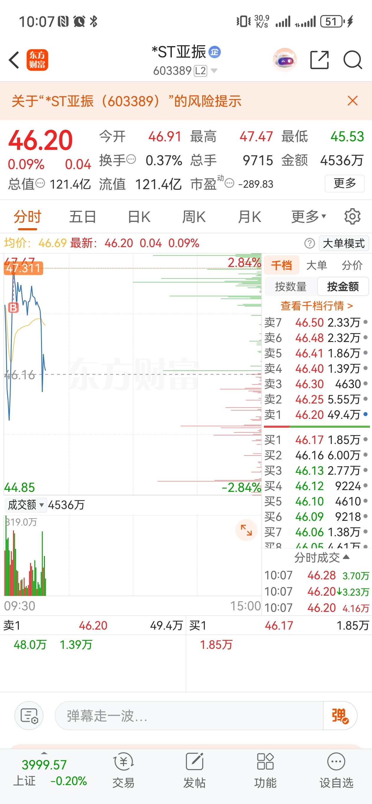 $*ST亚振(SH603389)$ 被我100股直接买崩