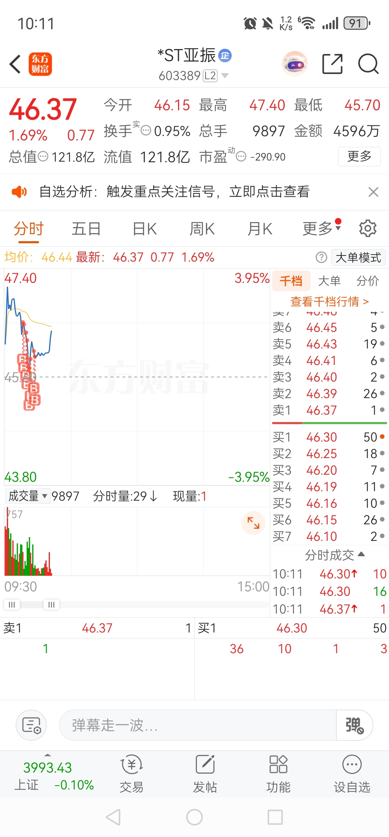$*ST亚振(SH603389)$ 振啊快下来,我好再加仓