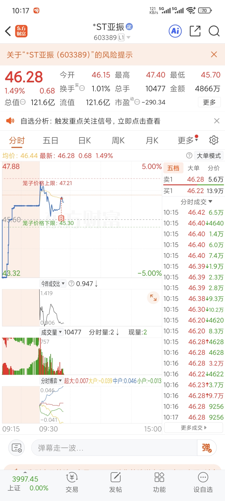 $*ST亚振(SH603389)$ 就跟犯病一样 一买就跌