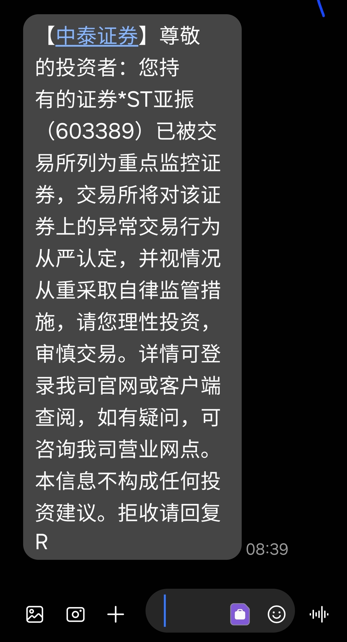 $*ST亚振(SH603389)$ 不是出监管了吗