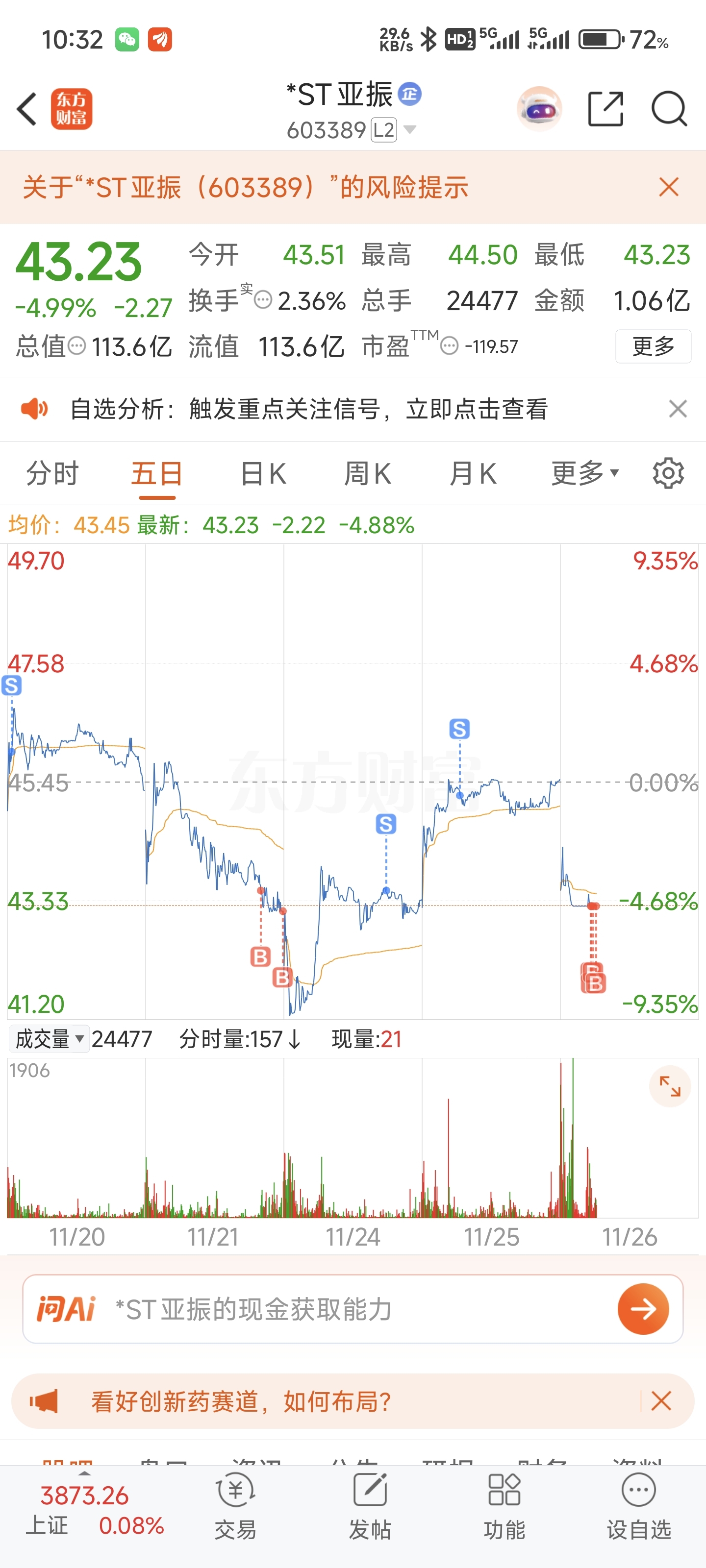 $*ST亚振(SH603389)$ 买在无人问津时,多说无益