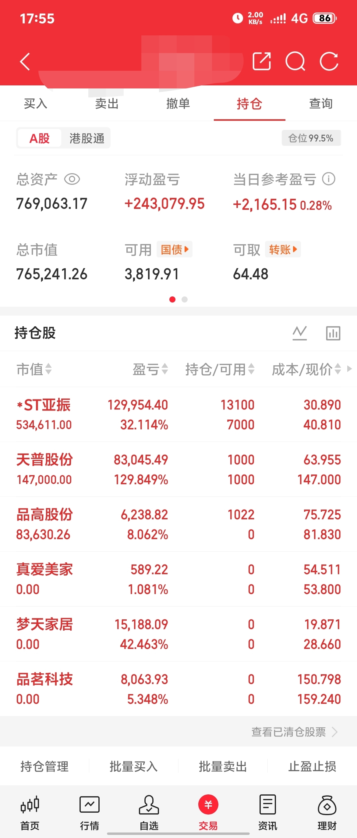 $*ST亚振(SH603389)$ 11月因亚振股价下行,其它股票股票上涨,亚振仓位由六成降至四成,今天共加仓72手仓位上升至五成多,下周一继续增仓至六成以上,坚定持股!