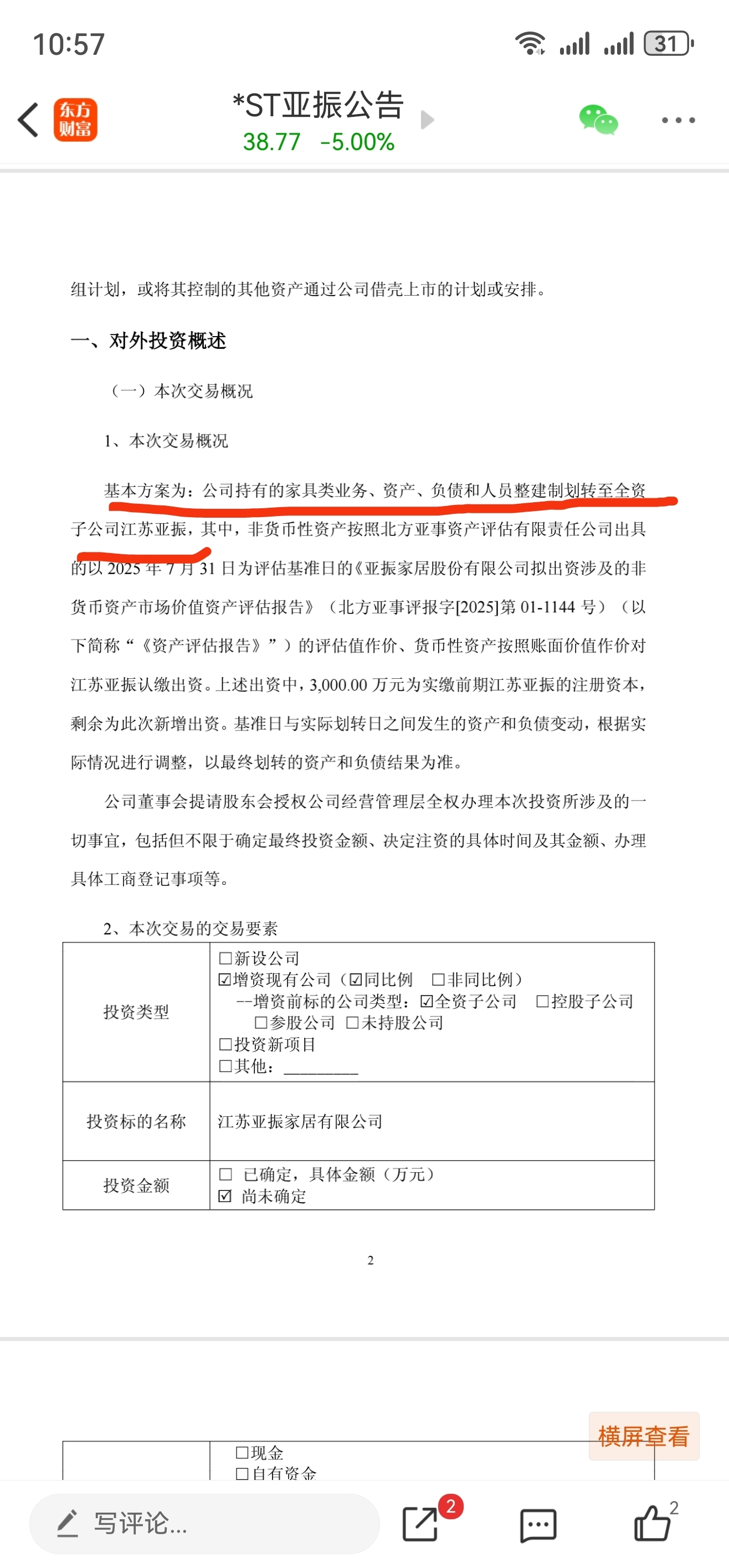 $*ST亚振(SH603389)$ 来了他来了,启动原家具主营剥离了。