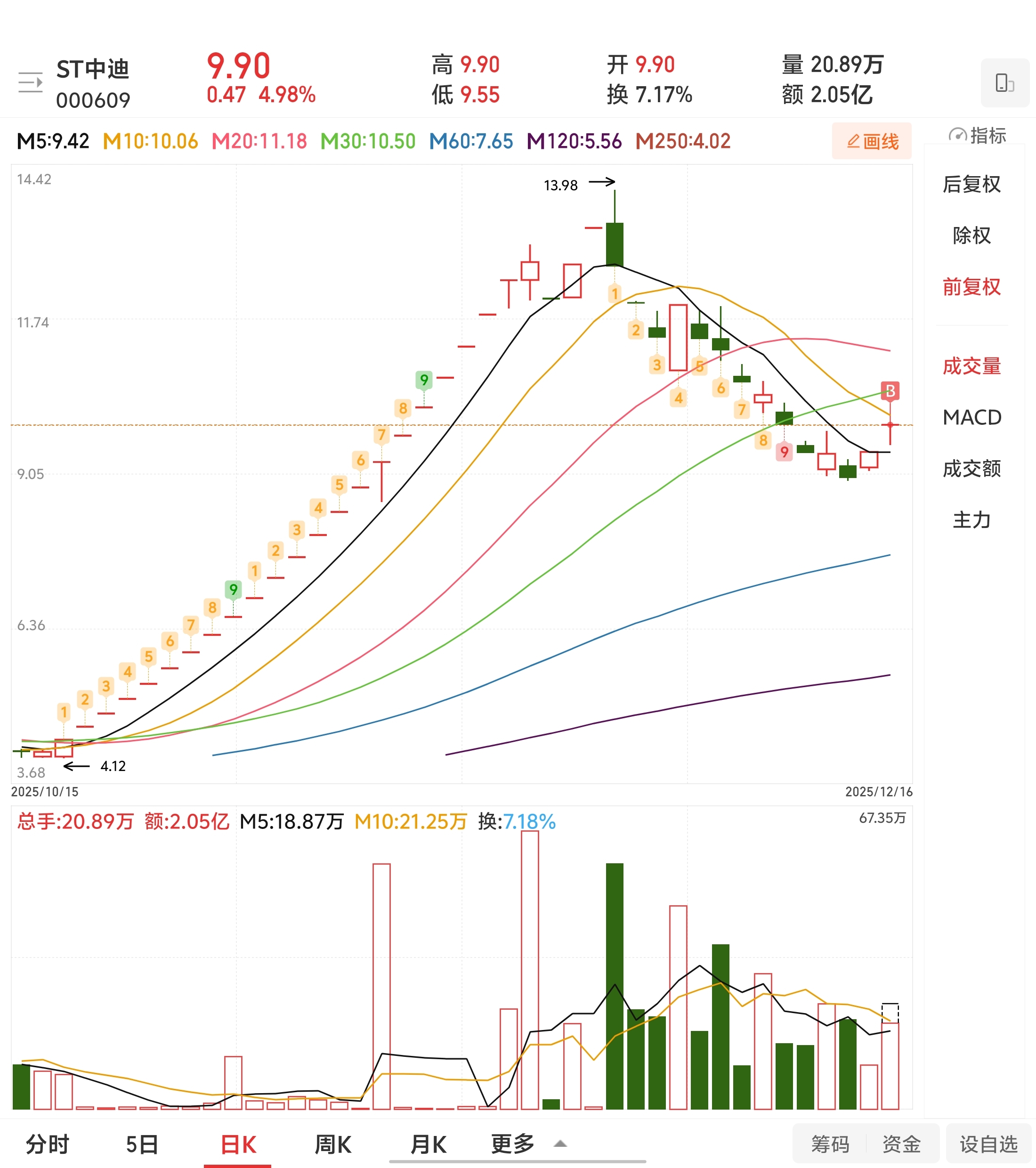 大家都判定ST板块死了,但看看涨幅前三,于是卖了亚振的一点点资金进了中迪,小赌一
