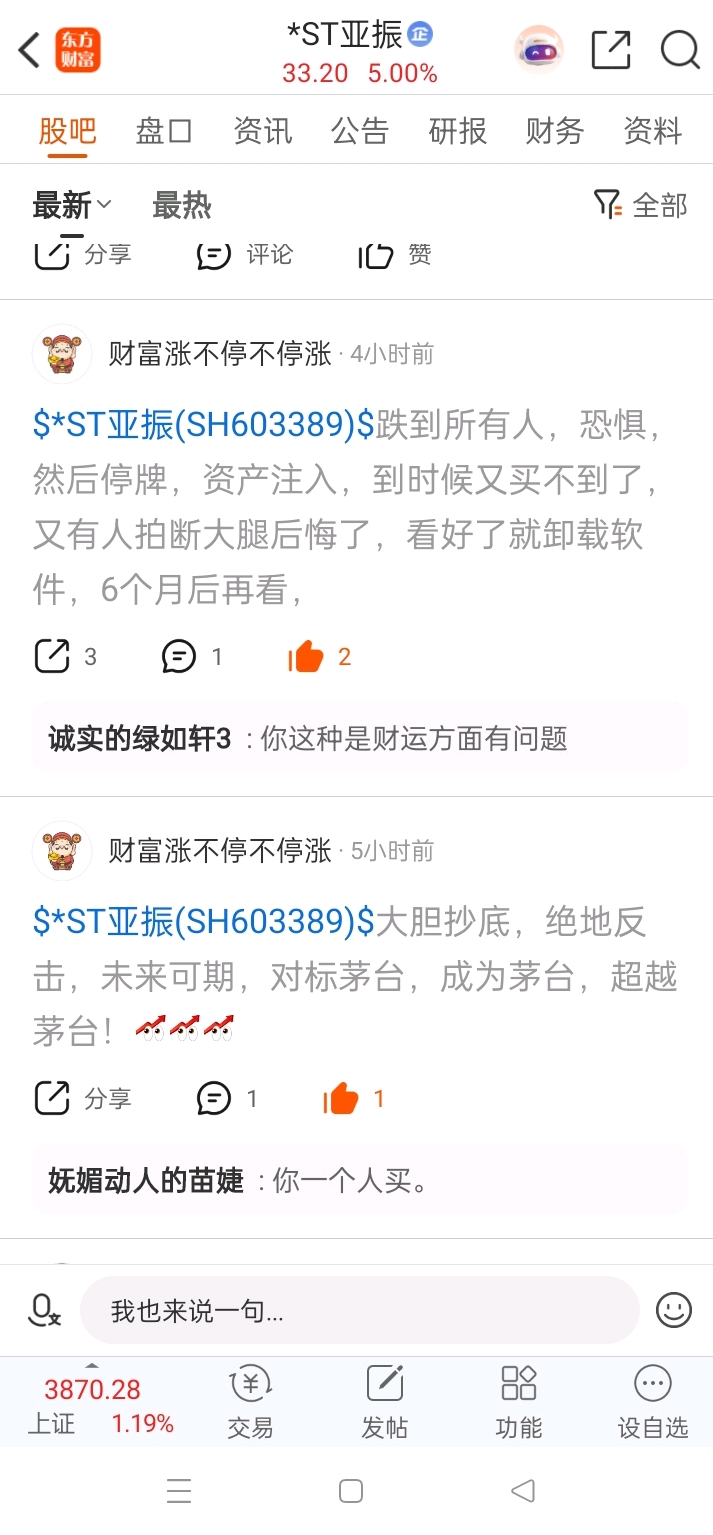 温馨提示: 1.根据《证券法》规定,禁止编造、传播虚假信息或者误导性信息,扰乱证券市场;2.用户在本社区发表的所有资料、言论等仅代表个人观点,与本网站立场无关,不对您构成任何投资建议。用户应基于自己的独立判断,自行决定证券投资并承担相应风险。《东方财富社区管理规定》