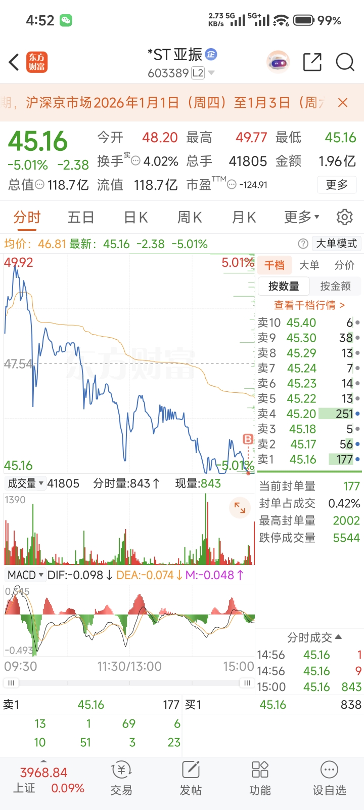 $*ST亚振(SH603389)$ 2025最后一天地板再捡点筹码,展望2026,q1年报预告,刨离家居资产。q2年报营收必够3亿然后摘帽,收购广西锆业剩余股权。q3-q4改名域潇矿业,重大资产重组。坚定持有,无惧波动。