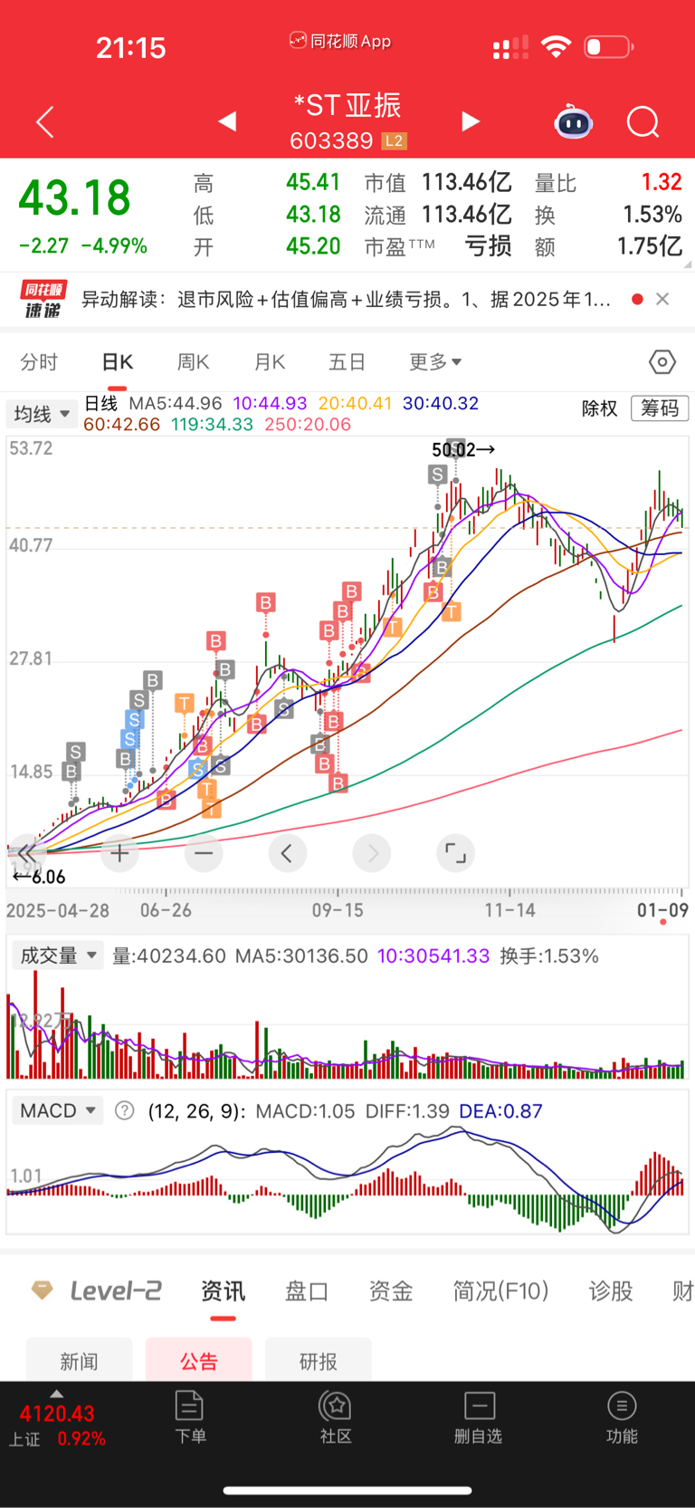 $*ST亚振(SH603389)$ 如果不是6开头估计早突破150亿了,买这个吃了好几次函,6开头的已经不敢碰了