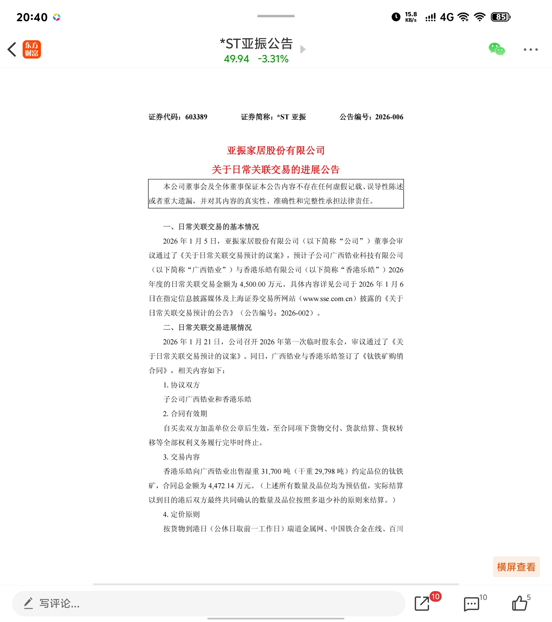 $*ST亚振(SH603389)$ 看这个公告就明白保壳是确定的,并不是每次监管公告后都是D停,数不清有多少股东是被多次监管公告吓出局了。预判明天低点48元左右,以阳线收盘!