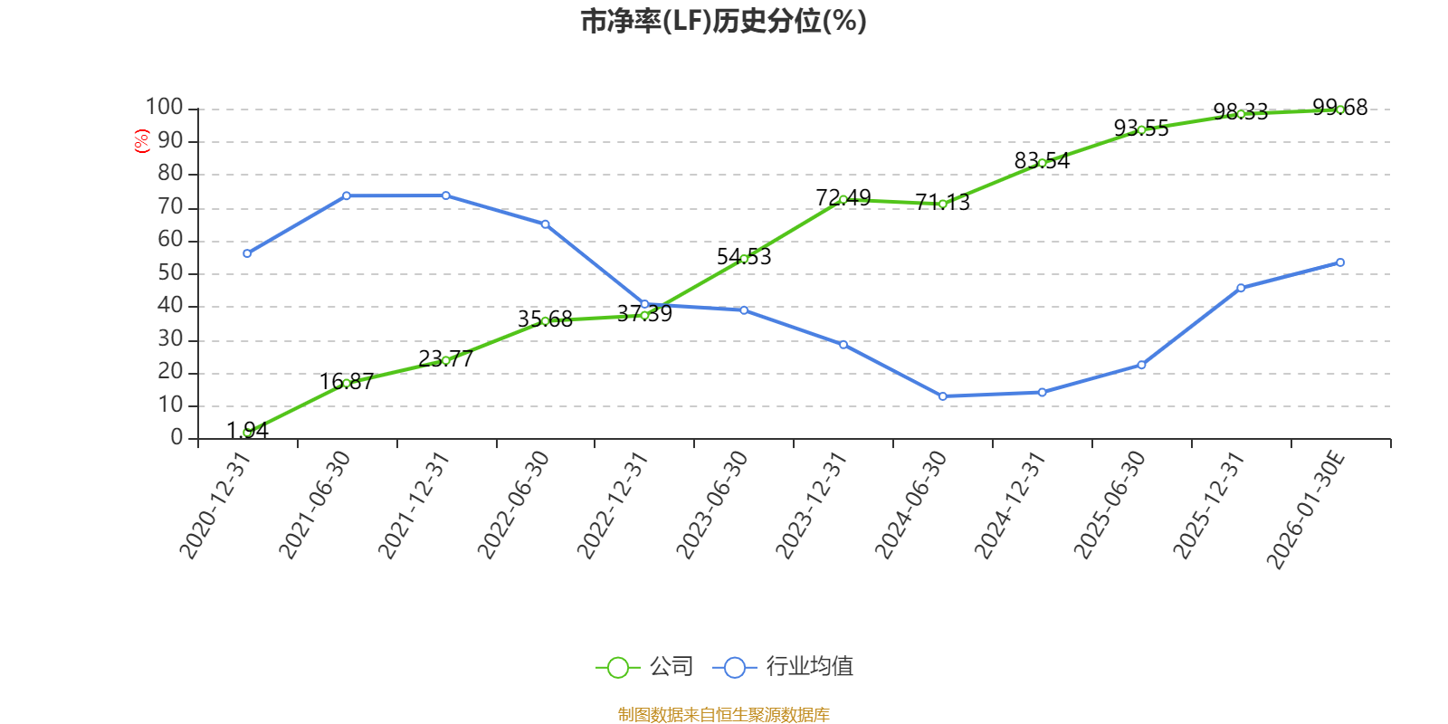 市盈率、市净率为负时,不显示当期分位数,会导致折线图中断。
