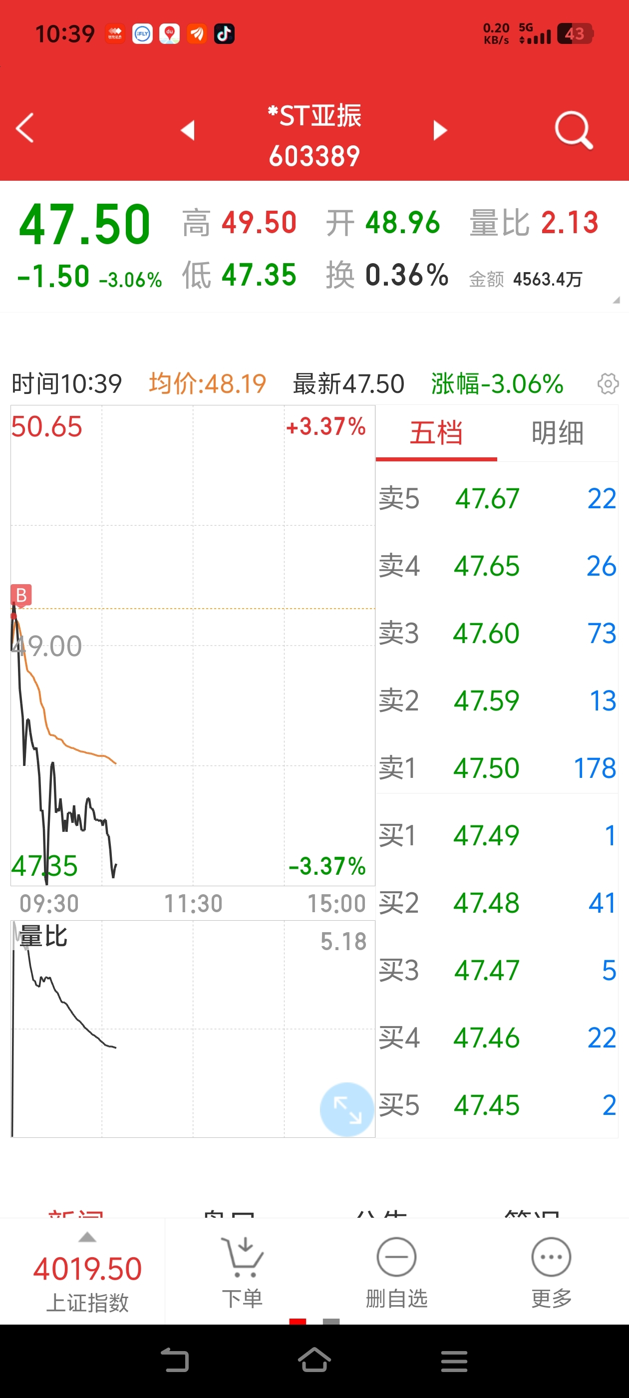 $*ST亚振(SH603389)$ 兄弟们,我回来炒底了