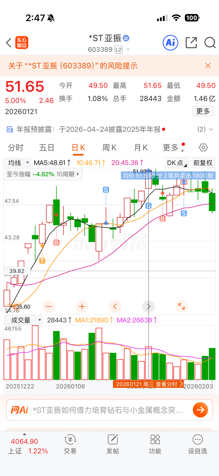 $*ST亚振(SH603389)$ 我应该是历史最高点跑的了,跑的时候还有人骂我