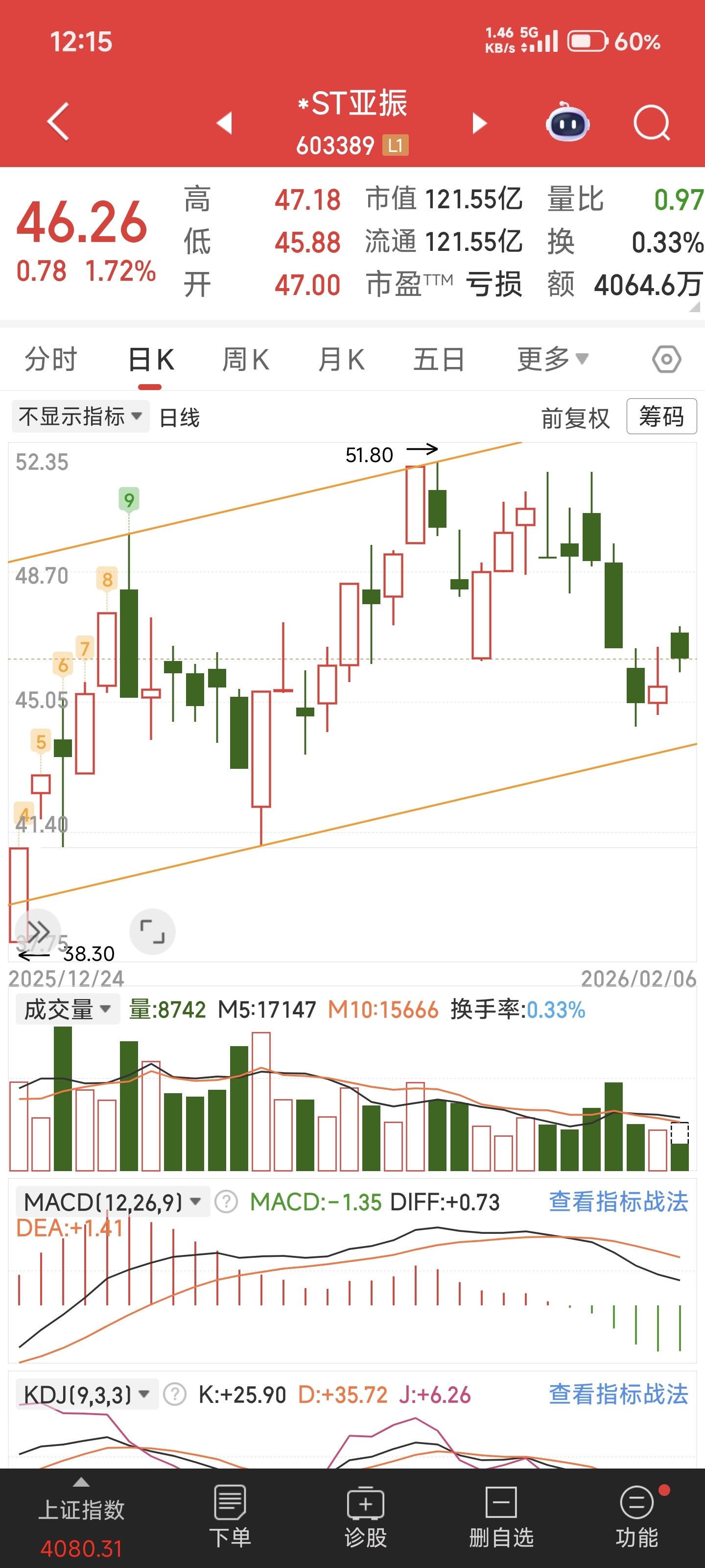 $*ST亚振(SH603389)$ 震荡向上趋势不变