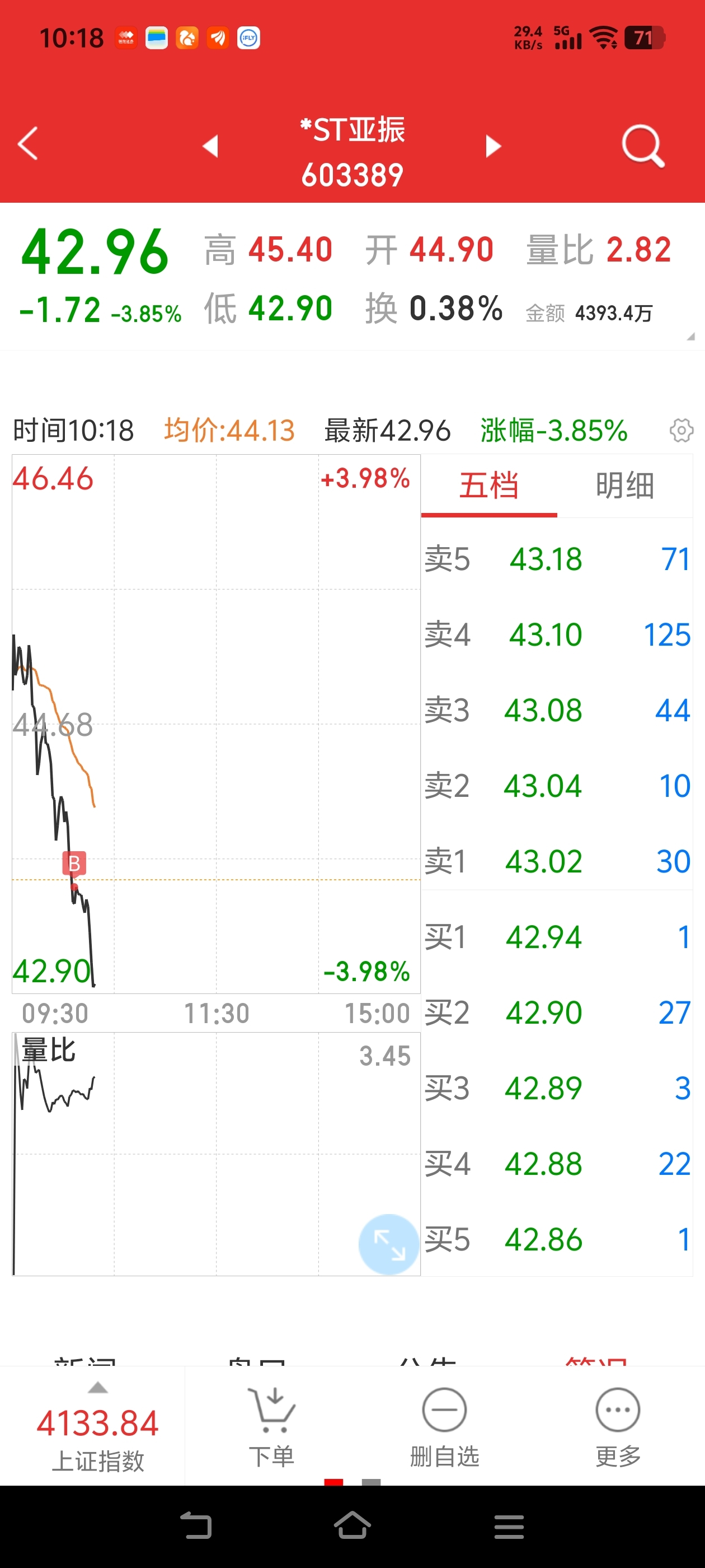 $*ST亚振(SH603389)$ 哭死了,每次来都要跌停