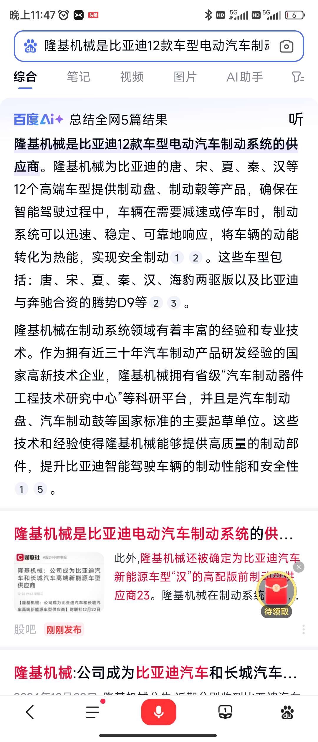 隆基机械在制动系统领域有着丰富的经验和专业技术。作为拥有近三十年汽车制动产品研发经验的国家高新技术企业,隆基机械拥有省级“汽车制动器件工程技术研究中心”等科研平台,并且是汽车制动盘、汽车制动鼓等国家标准的主要起草单位。这些技术和经验使得隆基机械能够提供高质量的制动部件,提升比亚迪智能驾驶车辆的制动性能和安全性。