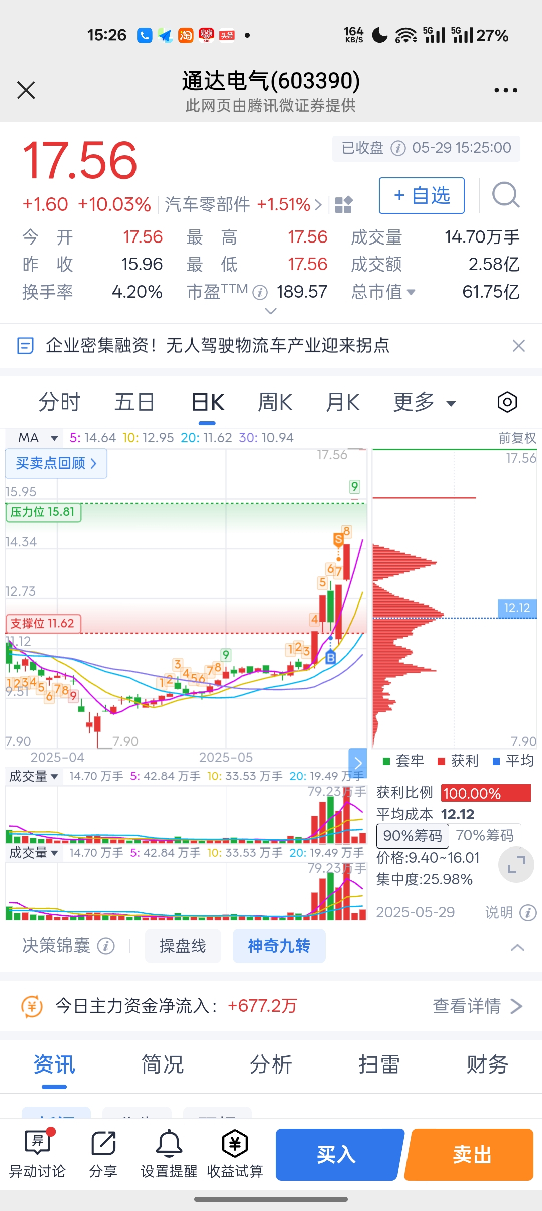$通达电气(SH603390)$ 我是韭菜皇帝,我是,我没那种命,抄了底,我没格局,