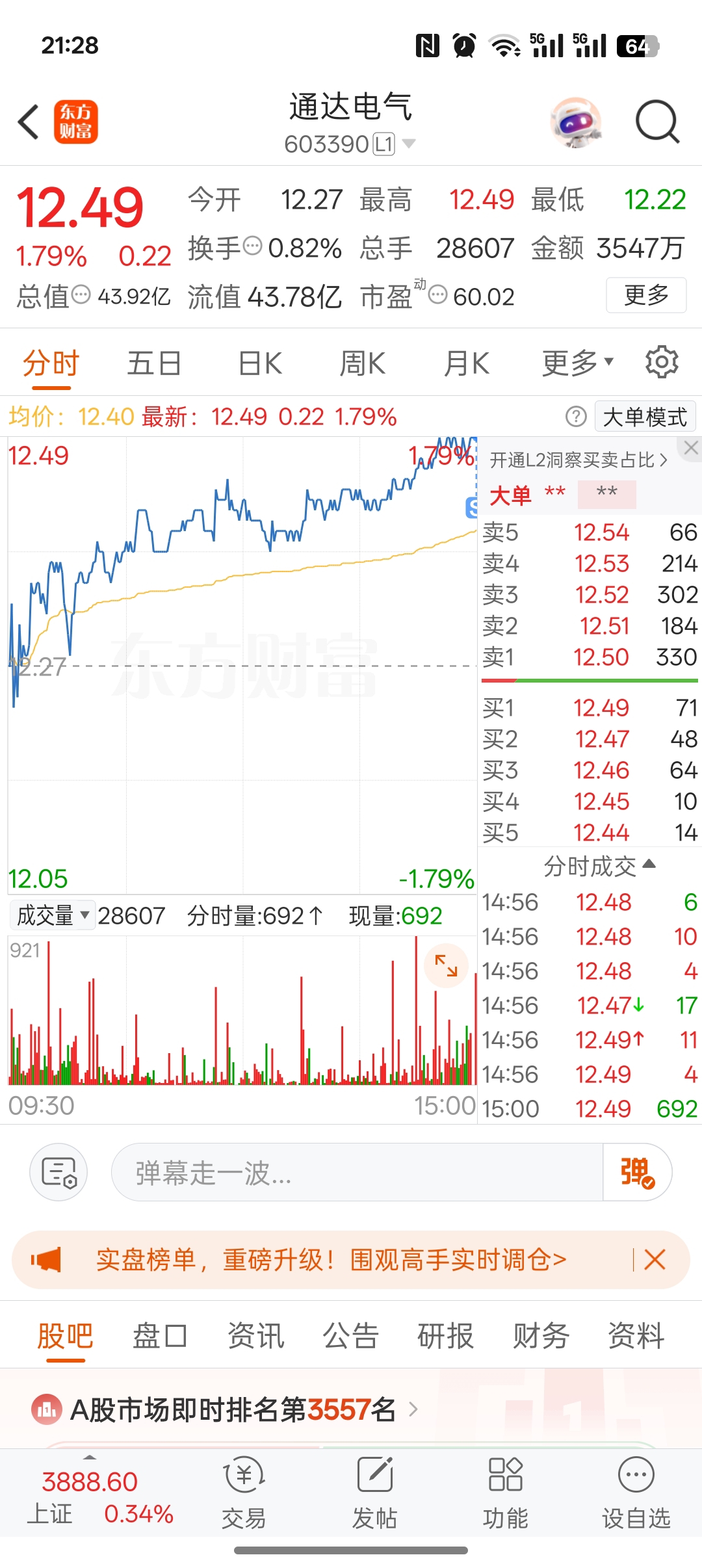 $通达电气(SH603390)$ 尾盘出了,你涨吧
