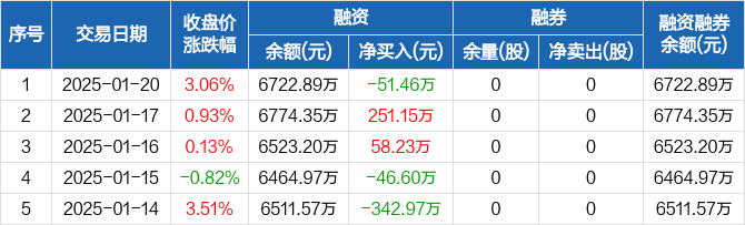 力聚热能:融资净偿还51.46万元,融资余额6722.89万元(01-20)