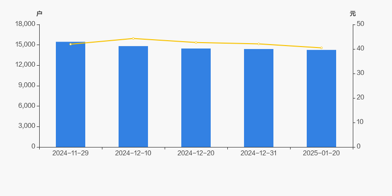 2024年11月29日至今,公司股东户数有所下降,区间跌幅为7.72%。2024年11月29日至2025年1月20日区间股价下降3.55%。