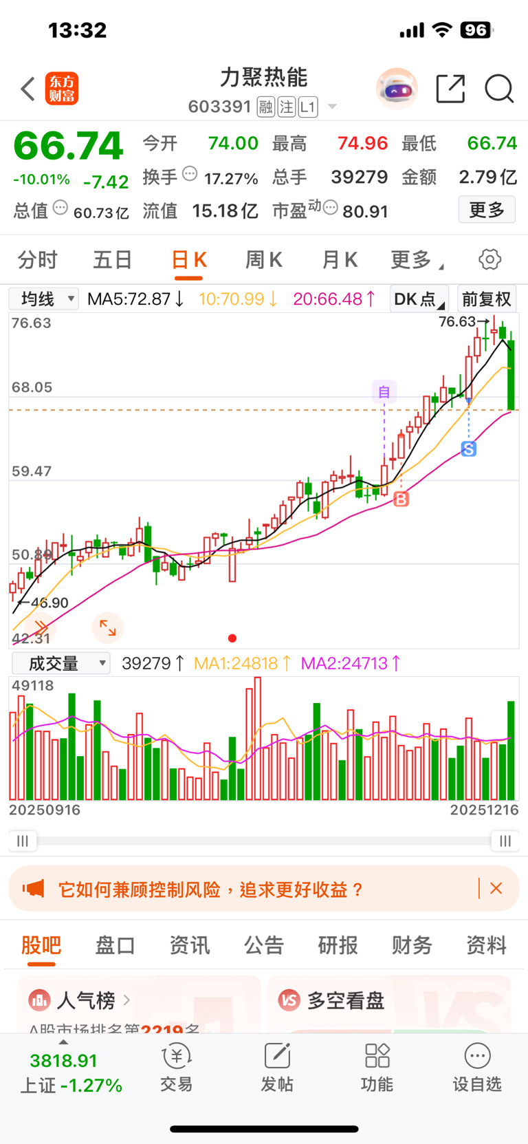 温馨提示: 1.根据《证券法》规定,禁止编造、传播虚假信息或者误导性信息,扰乱证券市场;2.用户在本社区发表的所有资料、言论等仅代表个人观点,与本网站立场无关,不对您构成任何投资建议。用户应基于自己的独立判断,自行决定证券投资并承担相应风险。《东方财富社区管理规定》