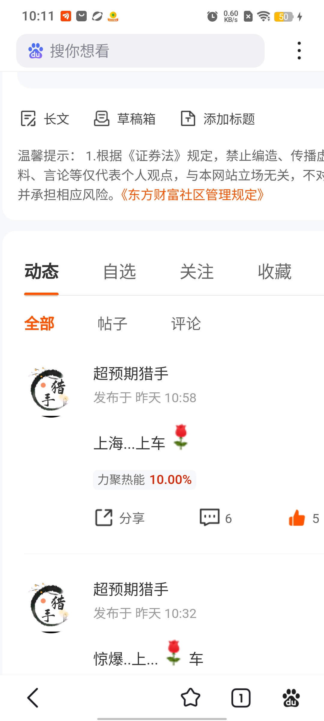 温馨提示: 1.根据《证券法》规定,禁止编造、传播虚假信息或者误导性信息,扰乱证券市场;2.用户在本社区发表的所有资料、言论等仅代表个人观点,与本网站立场无关,不对您构成任何投资建议。用户应基于自己的独立判断,自行决定证券投资并承担相应风险。《东方财富社区管理规定》