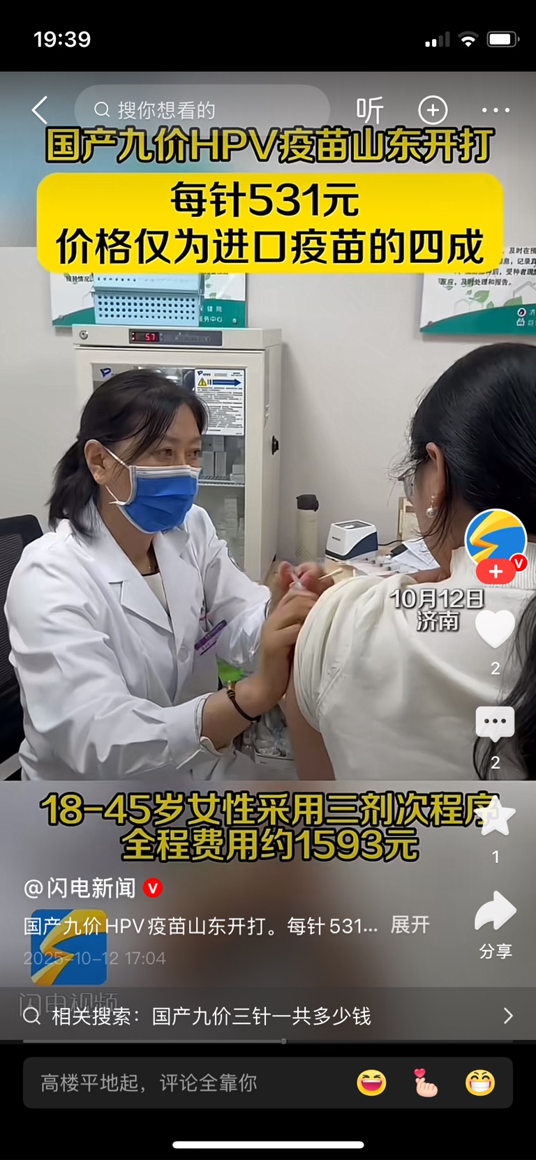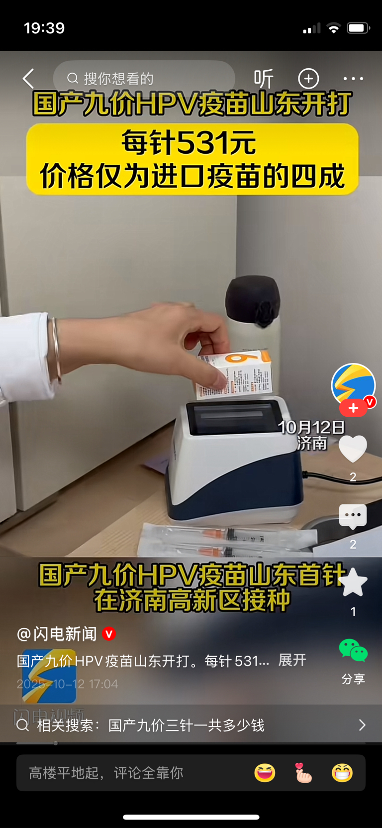 $万泰生物(SH603392)$ 齐鲁网·闪电新闻10月12日讯10月12日,国产九价HPV疫苗山东首针接种仪式在山东省济南高新区举行,标志着我国自主研发的九价HPV疫苗正式在山东投入使用,为我省9~45岁女性提供更加全面、可及的宫颈癌防护选择。