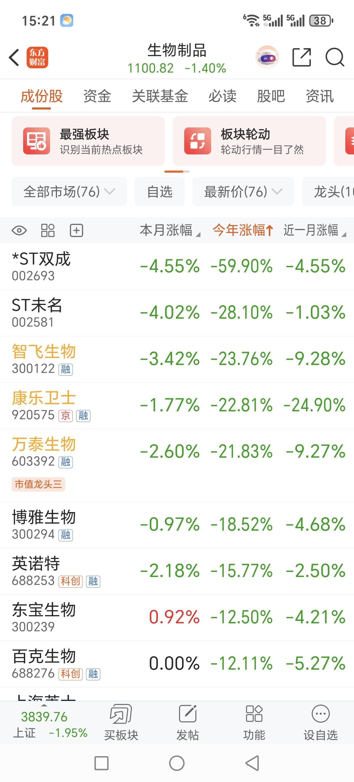 万泰今年以来涨幅在生物医药里面排行第五,比康乐和智飞强
