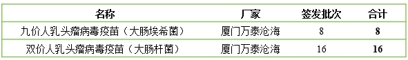九月HPV疫苗批签全部都是万泰生物的二价和九价,其中九价8批。Msd没有,沃森的