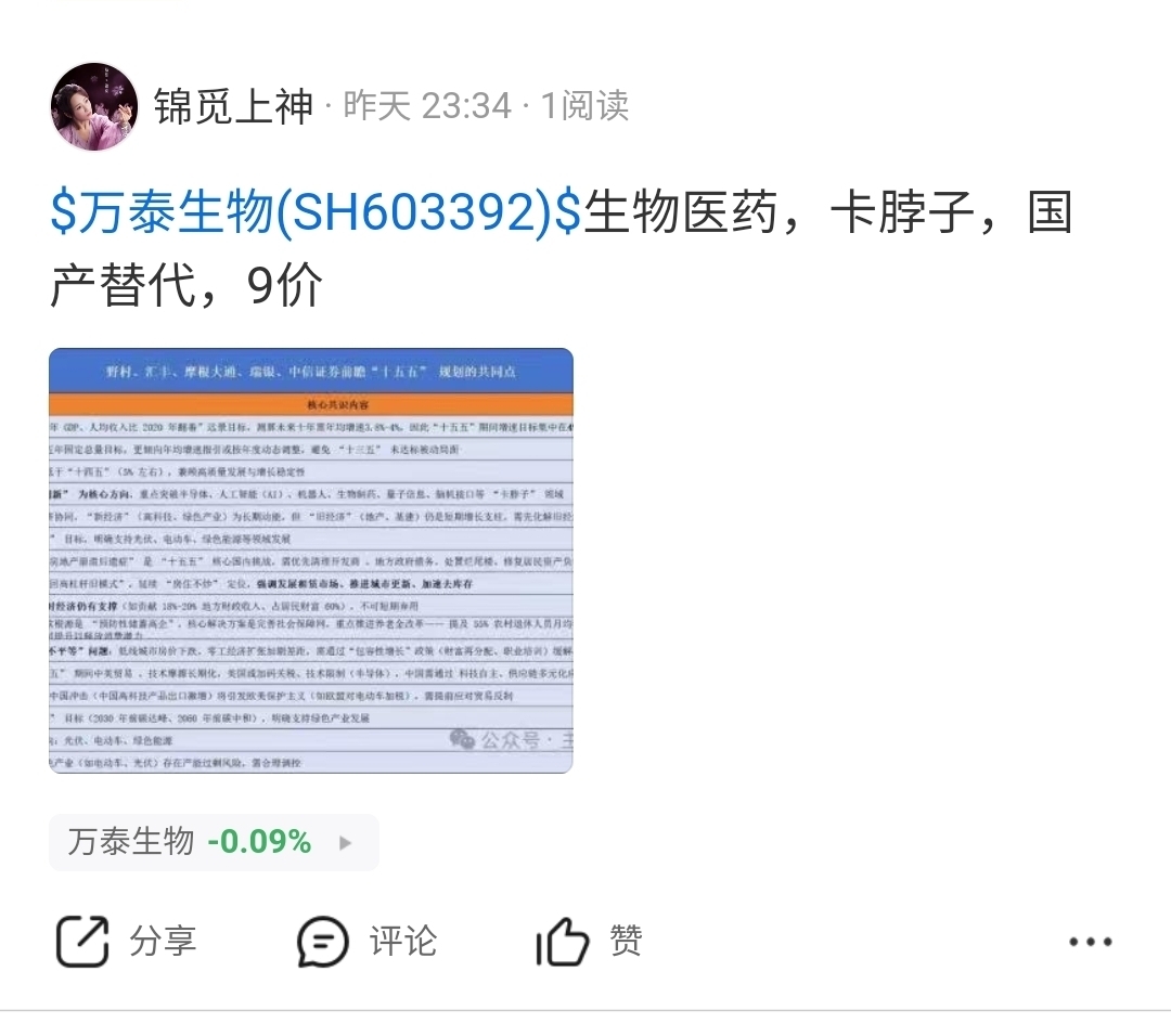 温馨提示: 1.根据《证券法》规定,禁止编造、传播虚假信息或者误导性信息,扰乱证券市场;2.用户在本社区发表的所有资料、言论等仅代表个人观点,与本网站立场无关,不对您构成任何投资建议。用户应基于自己的独立判断,自行决定证券投资并承担相应风险。《东方财富社区管理规定》
