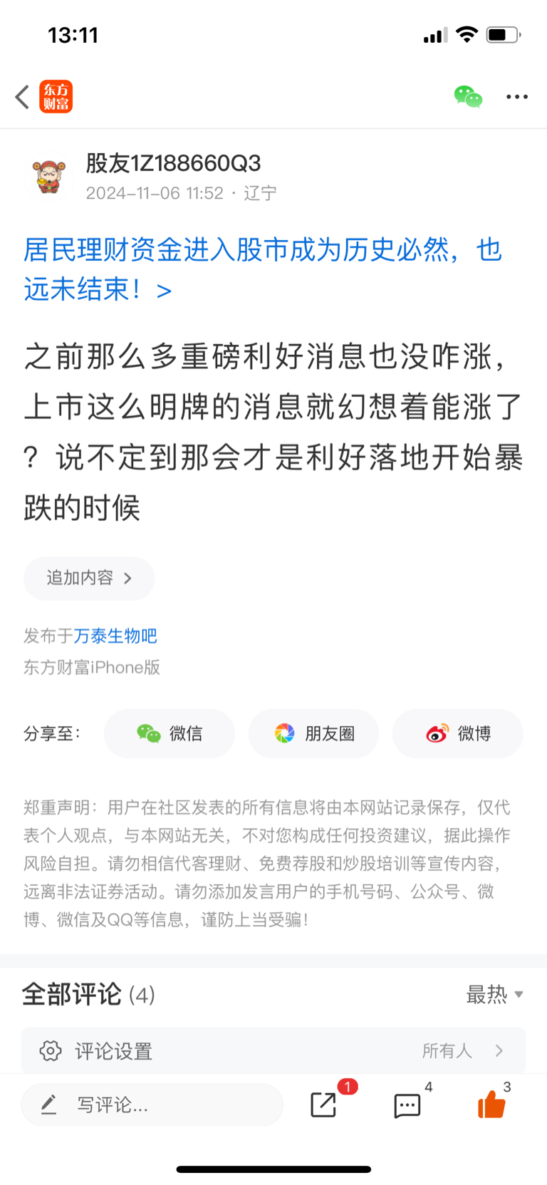 温馨提示: 1.根据《证券法》规定,禁止编造、传播虚假信息或者误导性信息,扰乱证券市场;2.用户在本社区发表的所有资料、言论等仅代表个人观点,与本网站立场无关,不对您构成任何投资建议。用户应基于自己的独立判断,自行决定证券投资并承担相应风险。《东方财富社区管理规定》