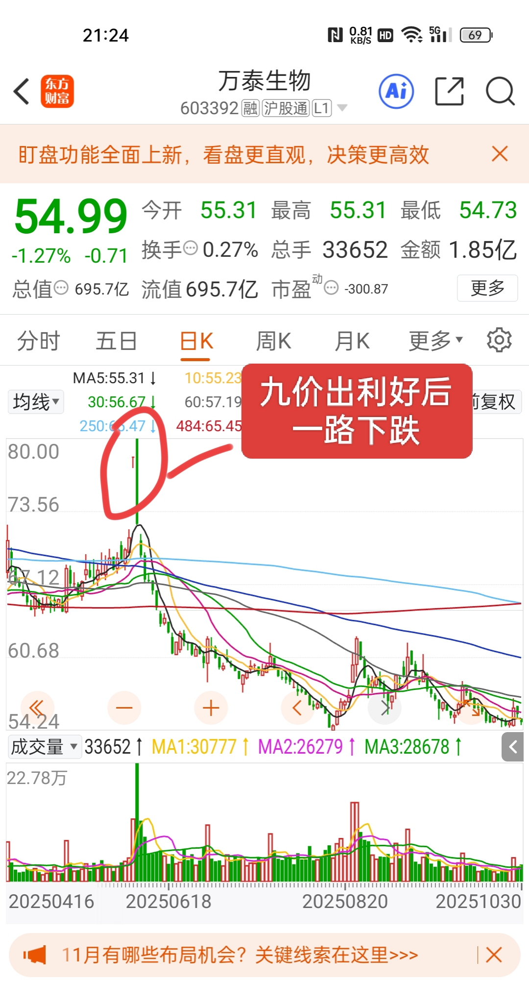 $万泰生物(SH603392)$ 明天又开始借利好出货了,上次9价出利好后一路下跌