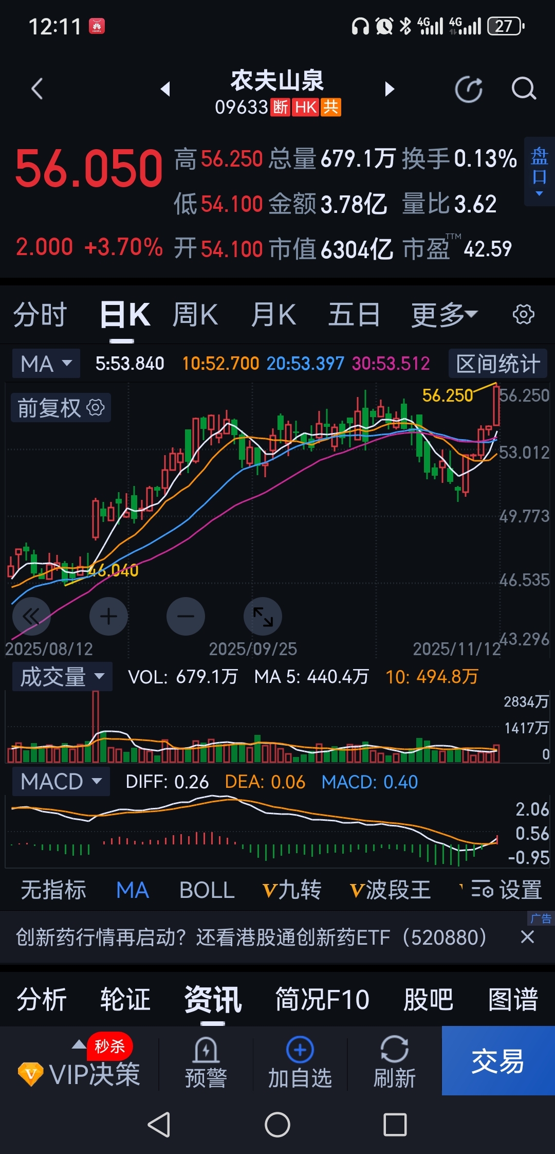港股农夫山泉再创近期新高,6300亿港币了,万泰得跟上。