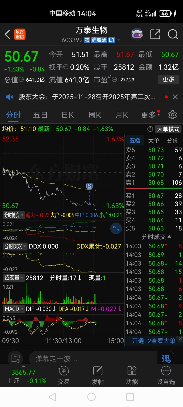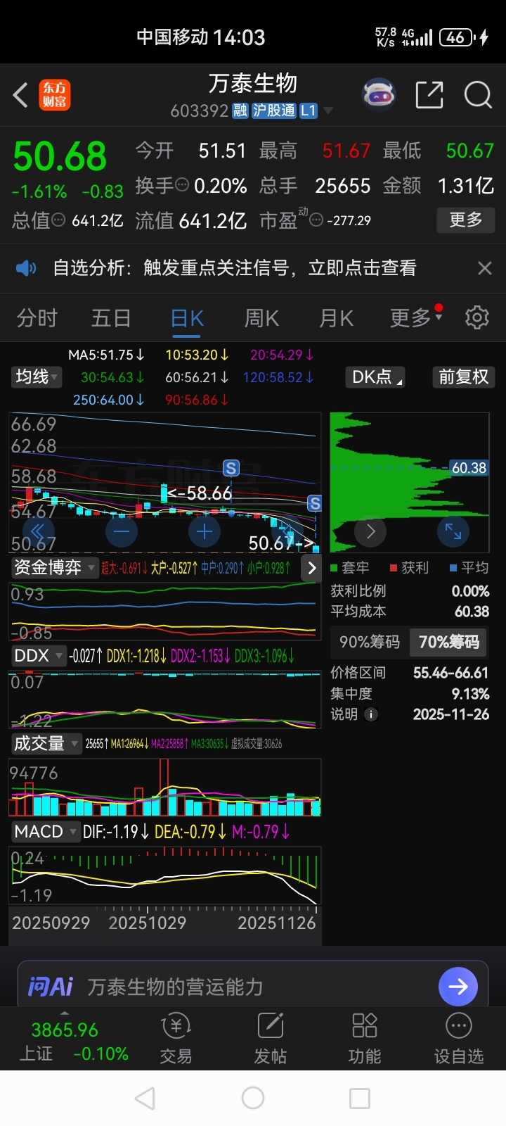 $万泰生物(SH603392)$ 已有两笔被迫割肉了