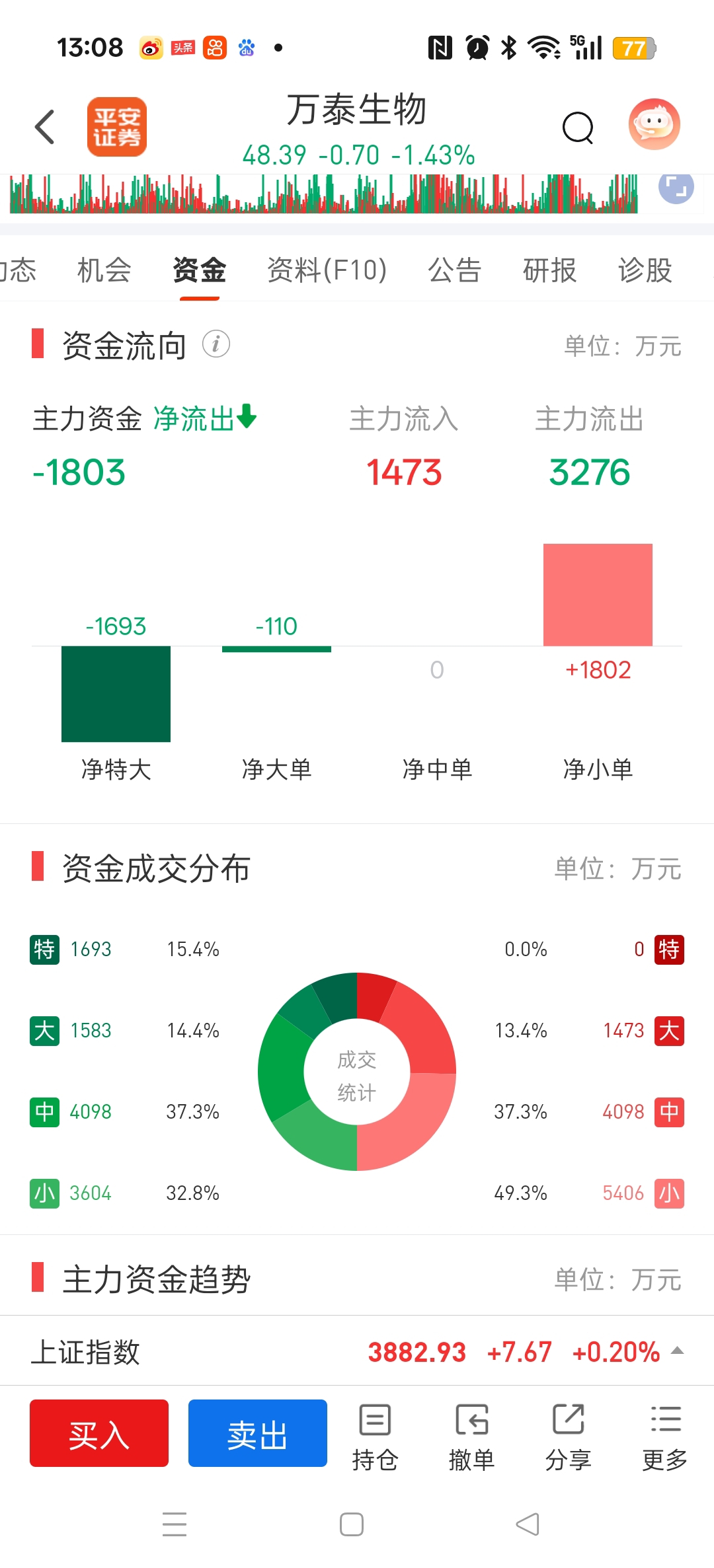 看不明白,为什么小单买入和大单卖出的钱相当股价会跌成这样呢?感觉数据都错了按流出