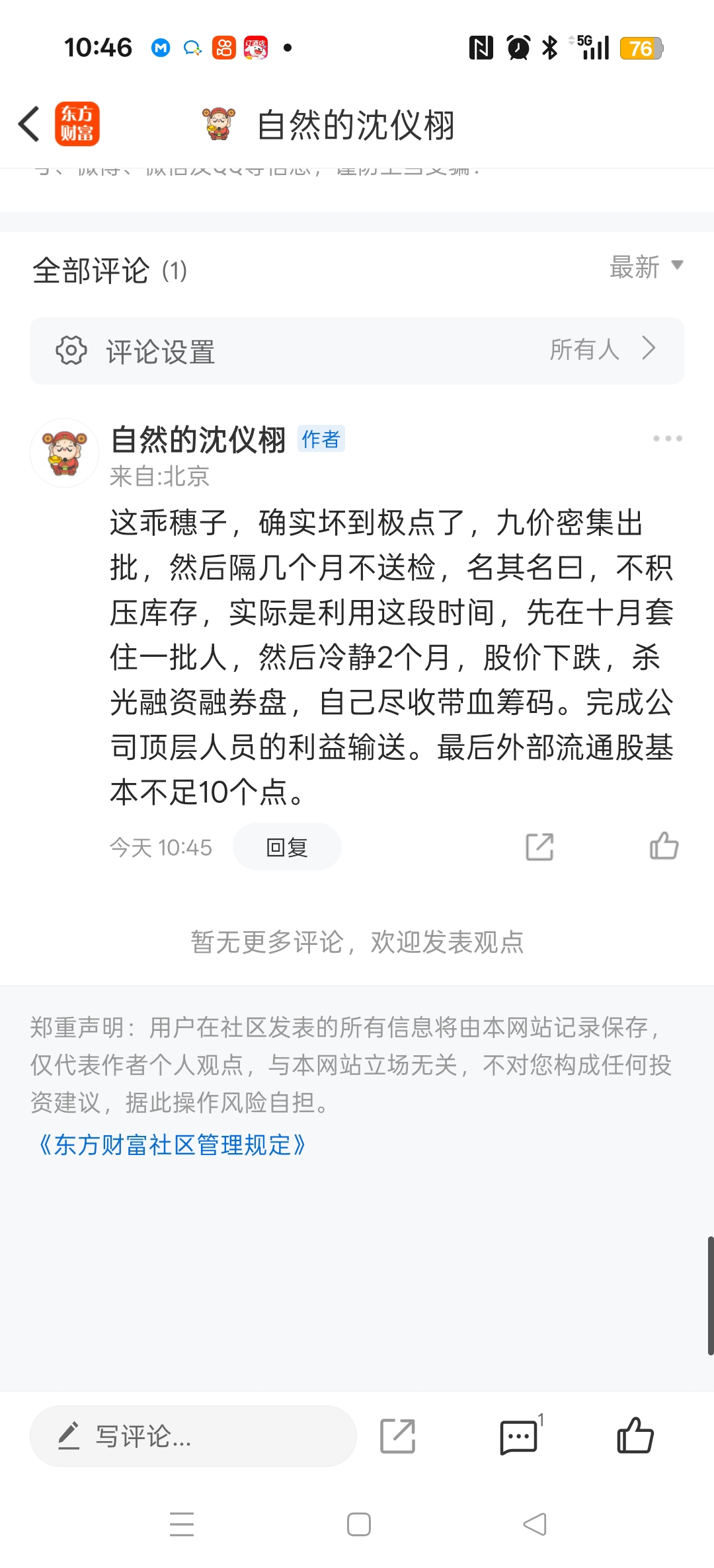 温馨提示: 1.根据《证券法》规定,禁止编造、传播虚假信息或者误导性信息,扰乱证券市场;2.用户在本社区发表的所有资料、言论等仅代表个人观点,与本网站立场无关,不对您构成任何投资建议。用户应基于自己的独立判断,自行决定证券投资并承担相应风险。《东方财富社区管理规定》