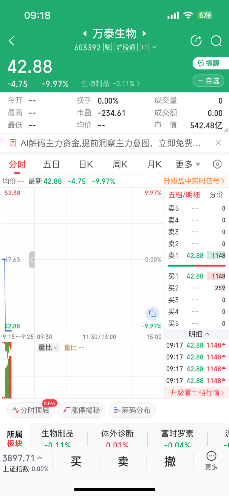 $万泰生物(SH603392)$ 兄弟们,今天怎么看,42块了。