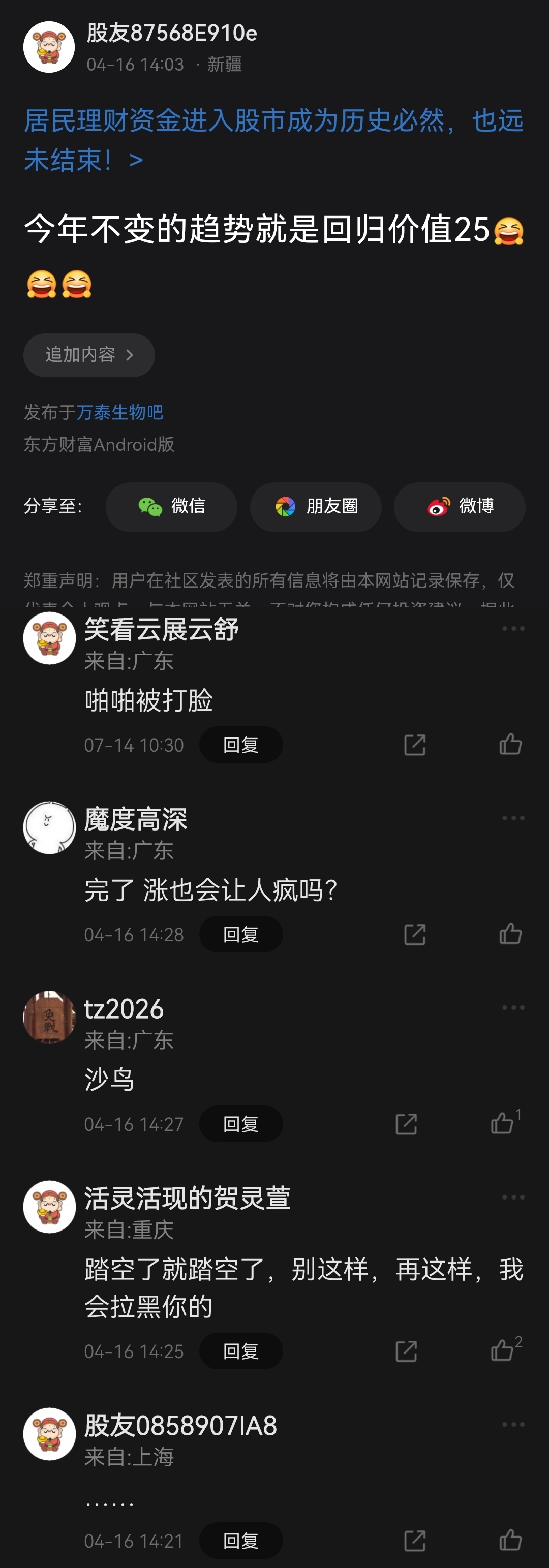 温馨提示: 1.根据《证券法》规定,禁止编造、传播虚假信息或者误导性信息,扰乱证券市场;2.用户在本社区发表的所有资料、言论等仅代表个人观点,与本网站立场无关,不对您构成任何投资建议。用户应基于自己的独立判断,自行决定证券投资并承担相应风险。《东方财富社区管理规定》