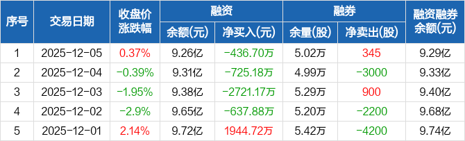 万泰生物:融资余额9.26亿元,创近一年新低(12-05)