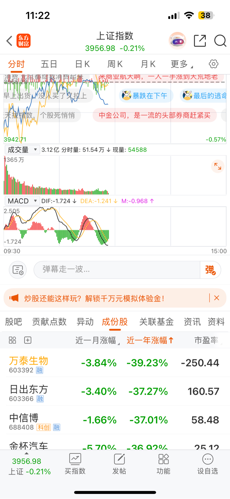 $万泰生物(SH603392)$ 恭喜万泰生物全年上证指数跌幅第一!!!!