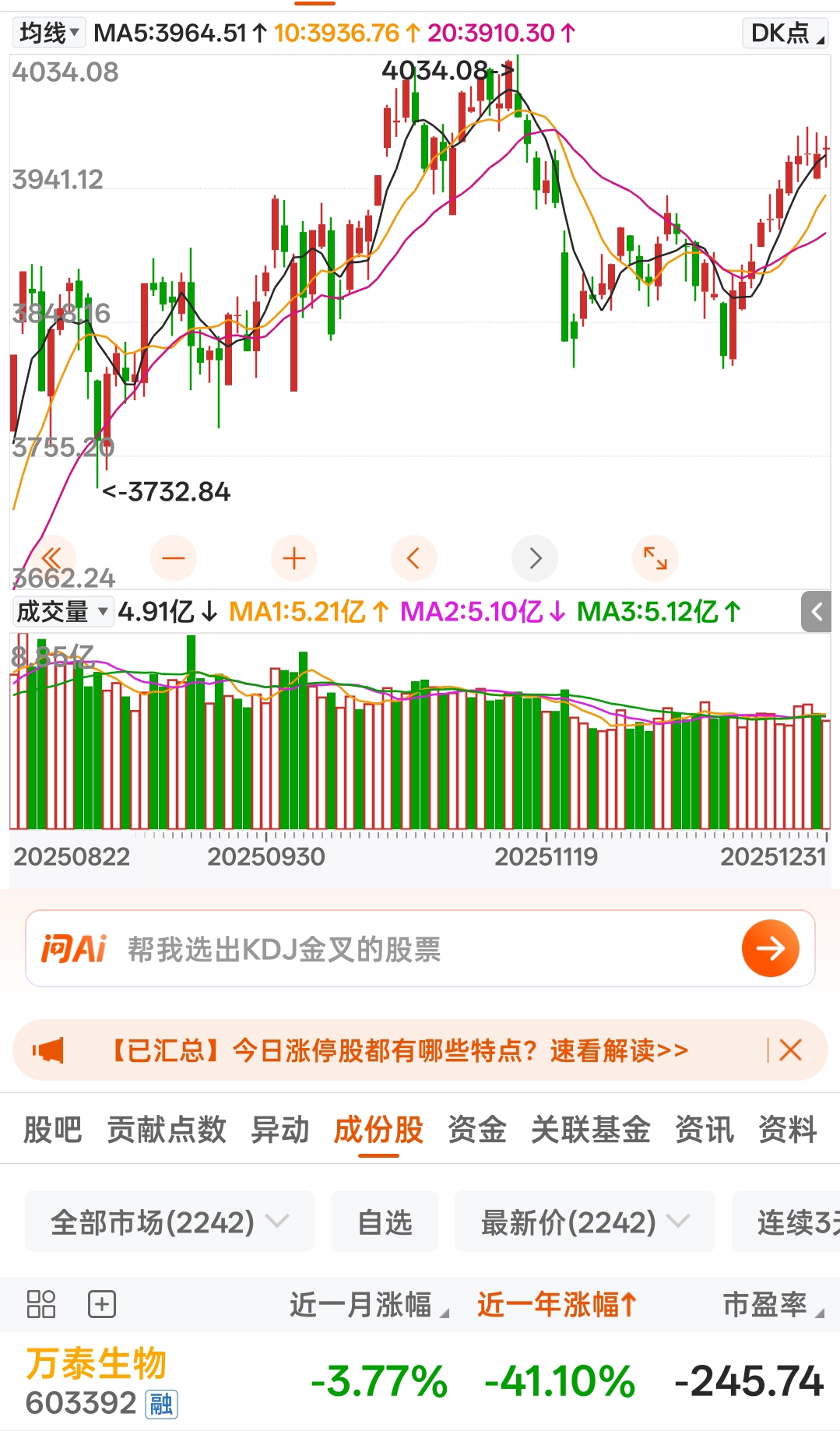 $万泰生物(SH603392)$ 上证11连阳收官,万泰41.1跌幅收棺